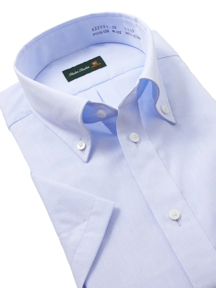 【形態安定】 半袖ワイシャツ ボタンダウン 織柄無地 ハントレークラブ 春夏