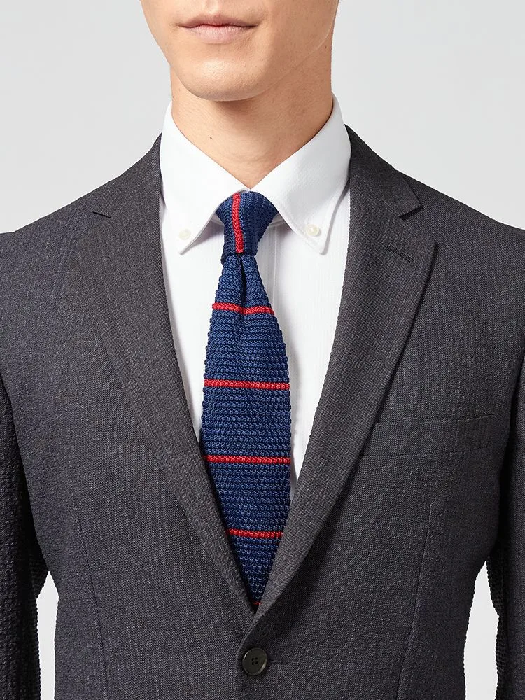 カジュアルなニットタイと合わせてもさまになります。