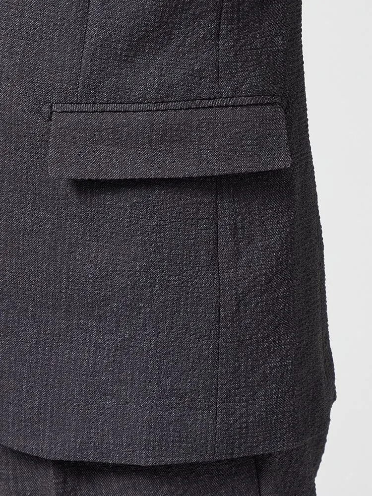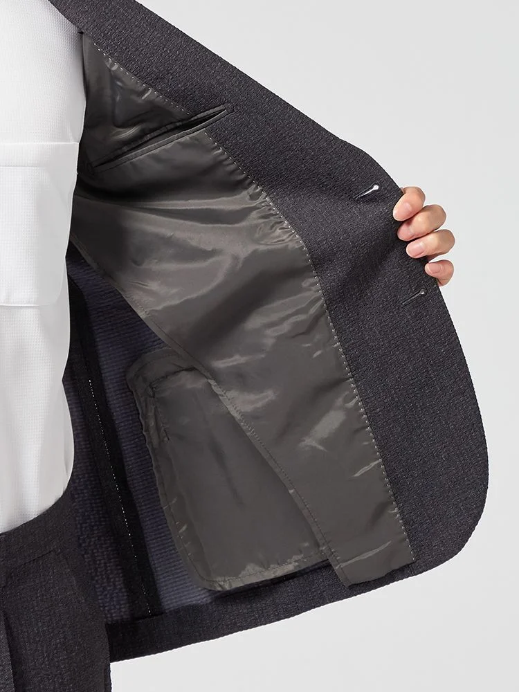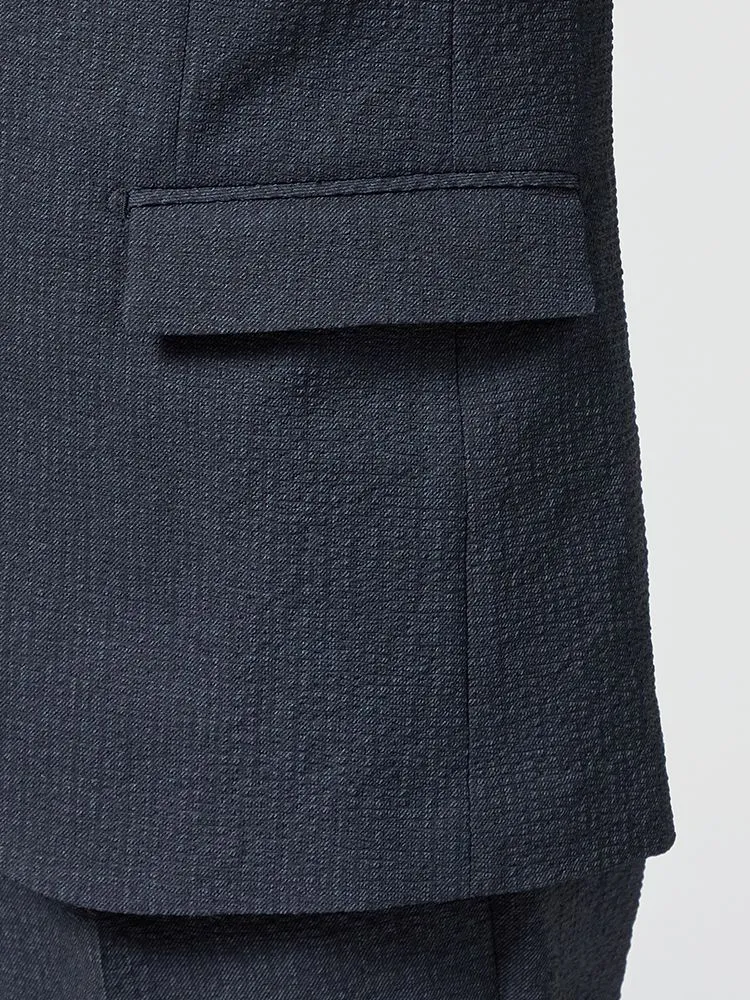 切り込みが1本のセンターベントデザインです。細身でスッキリとしたシルエットが特徴で、快適な着心地を提供します