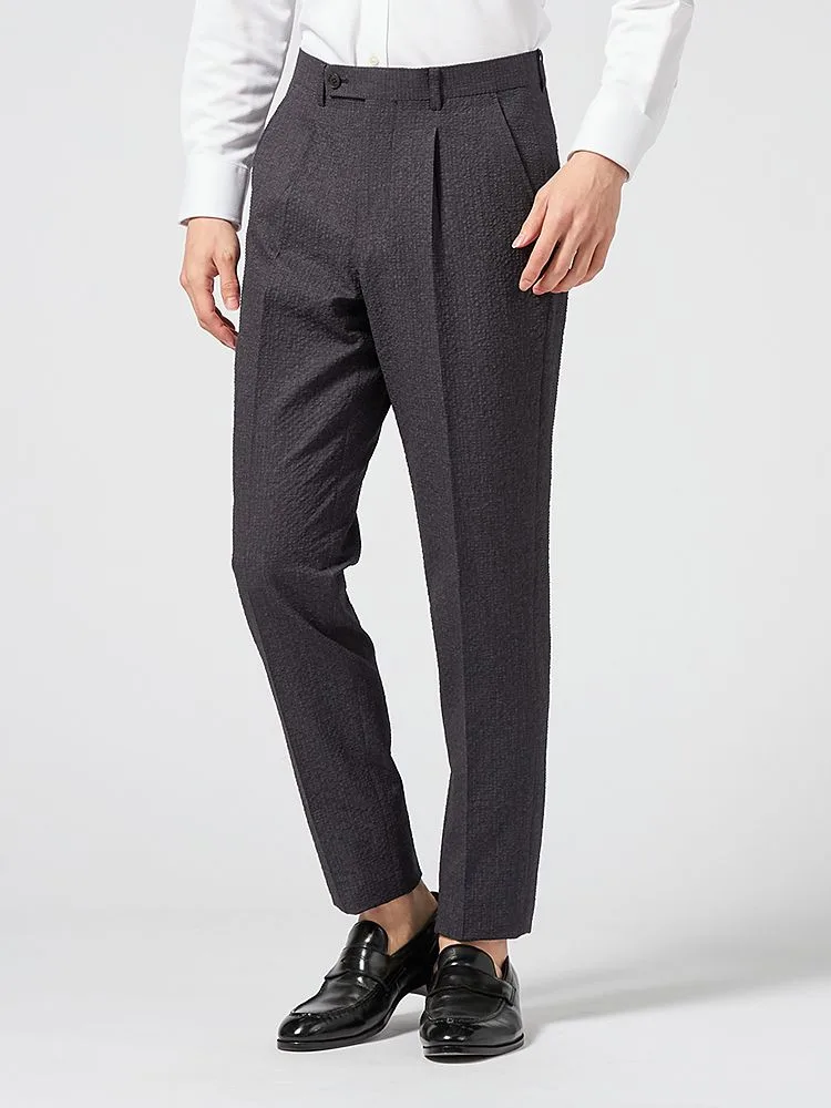 【上下ウォッシャブル】スーツ 2つボタン 軽量 表地ストレッチ素材 ワンタック 織柄無地 nero【i-Suit-アイスーツ-】春夏【スリムデザイン】(M.グレー)