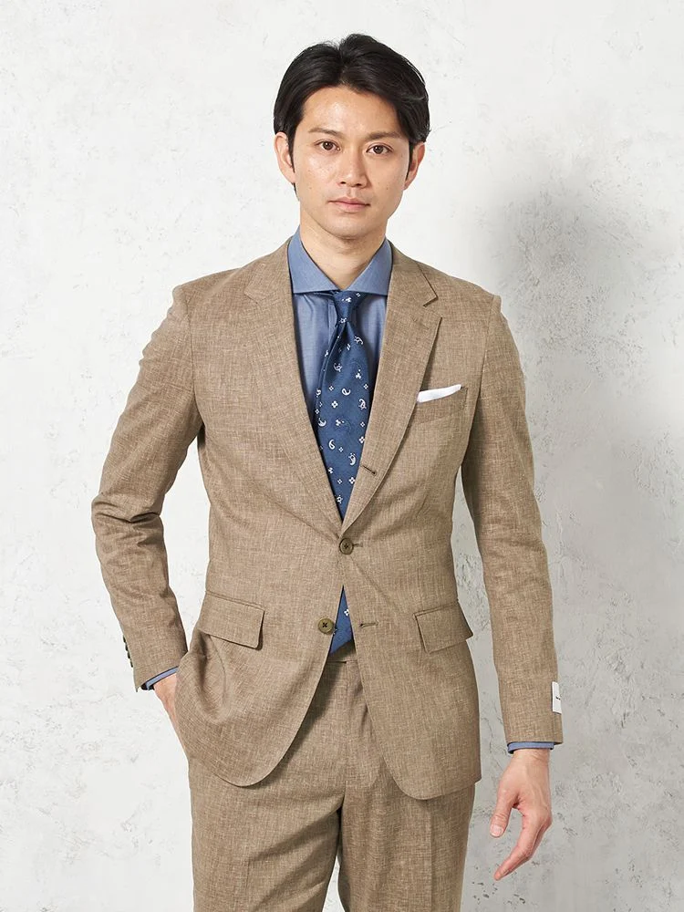 【パンツウォッシャブル】スーツ段返り3つボタンリネンライクライトフィールドライタッチ軽量ブラウンリッケンバッカー春夏