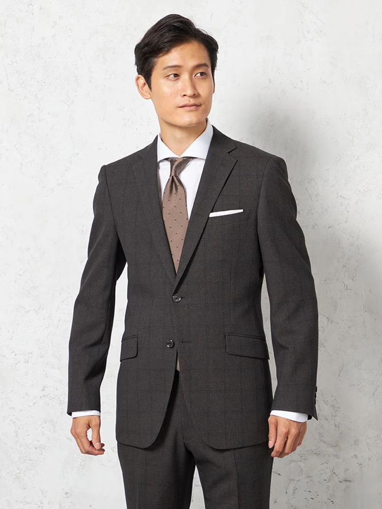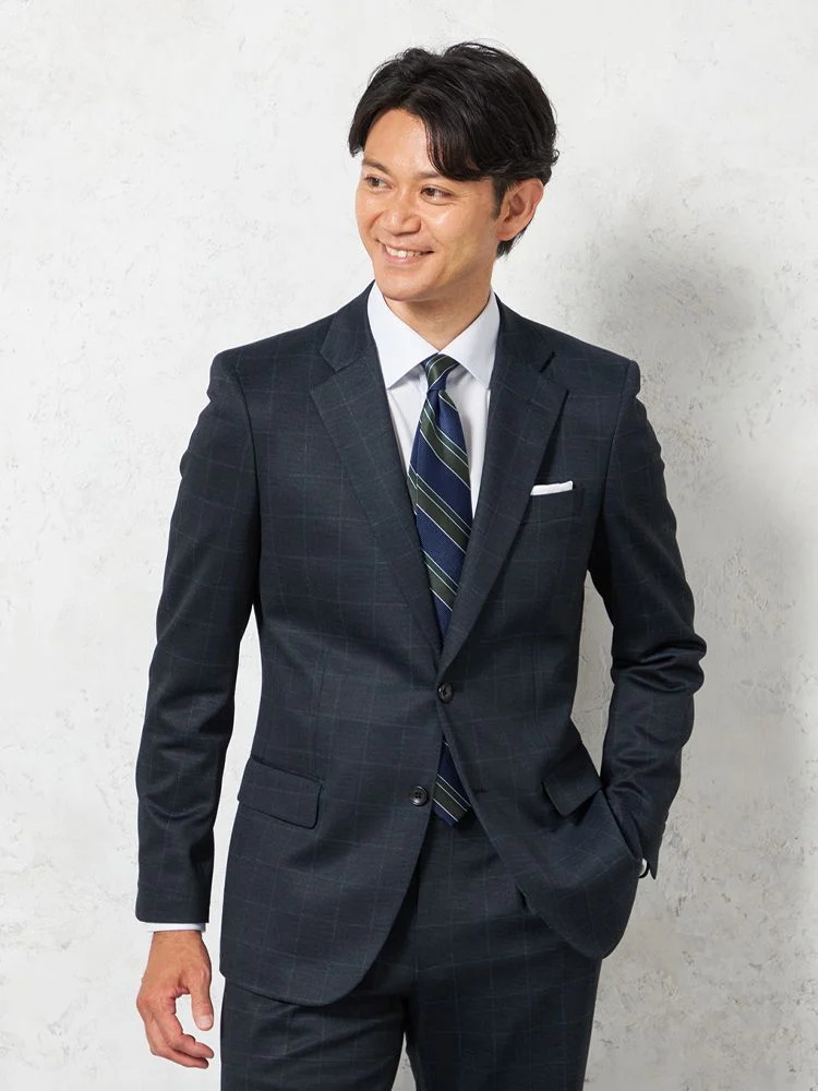 【上下ウォッシャブル】スーツ 2つボタン ウールライク チェック nero 秋冬【スリムデザイン】