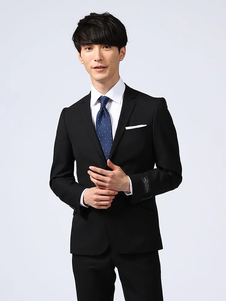 【即納】【WEB限定】スーツ2つボタンブラックシャドウストライプ上下ウォッシャブル3シーズン対応