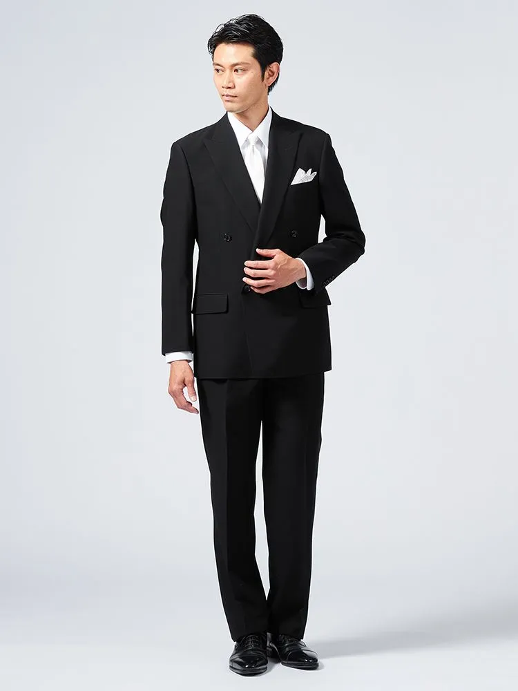 上品な雰囲気を演出するダブルブレストのブラックフォーマルです。