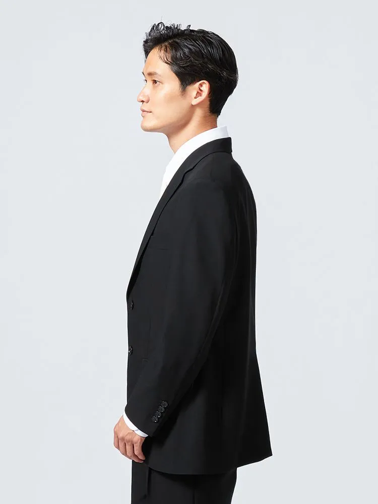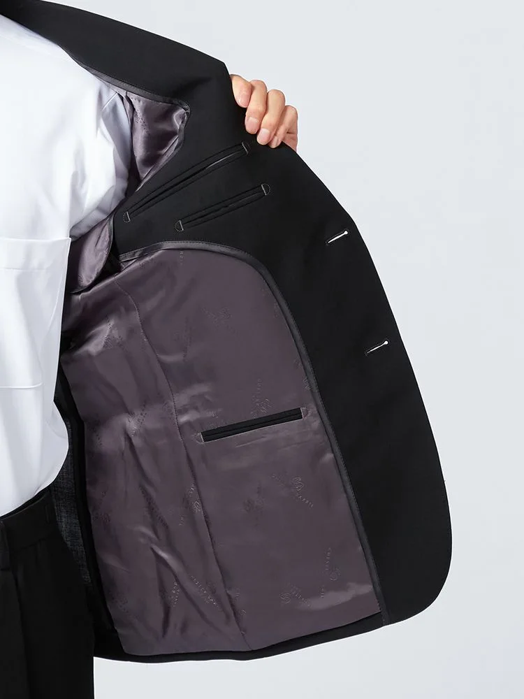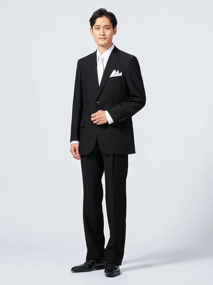 [礼服]【ウエストアジャスター仕様】フォーマル2つボタンウール混素材ブラック無地nero通年礼服【スリムデザイン】