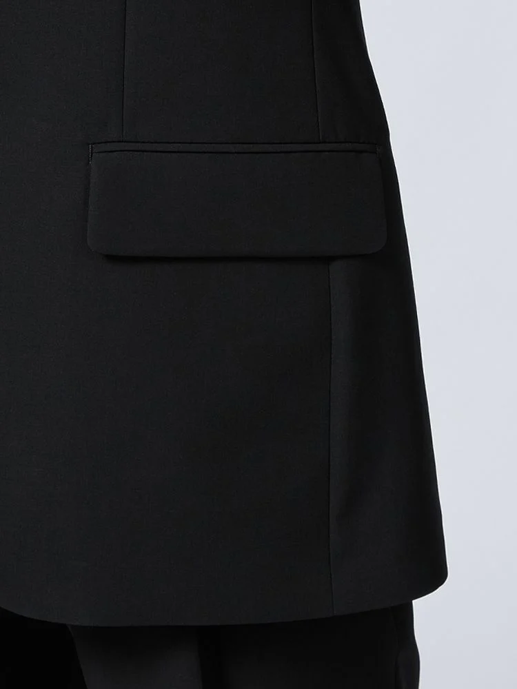 切り込みが1本のセンターベントデザインです。細身でスッキリとしたシルエットが特徴で、快適な着心地を提供します