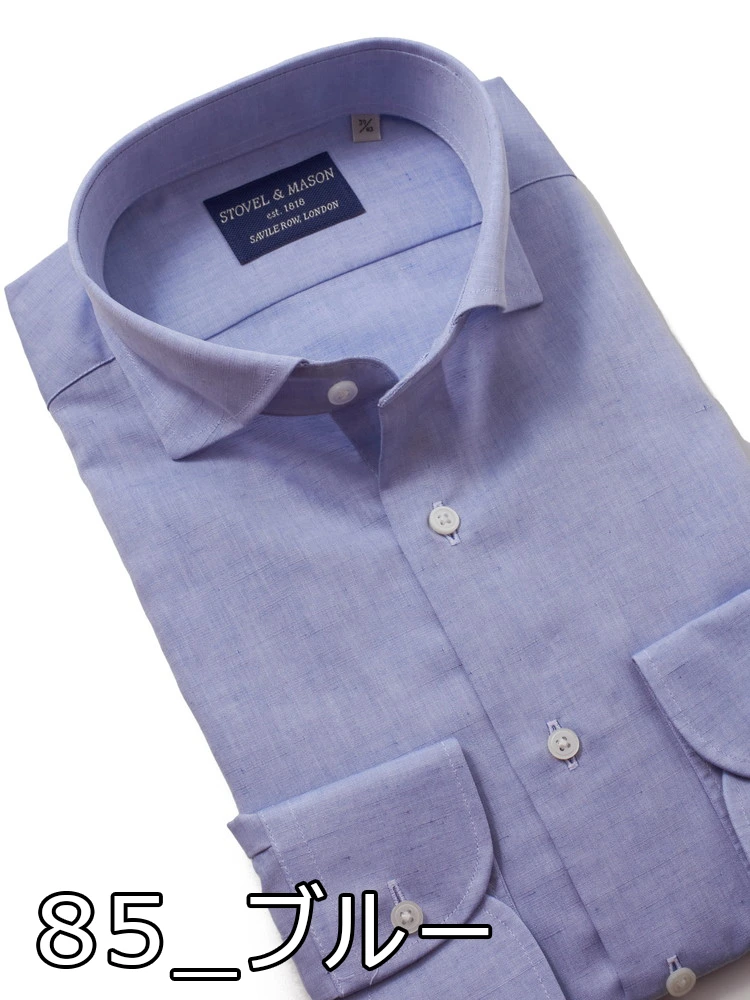 【形態安定】長袖 ワイシャツ カッタウェイ 綿麻 無地 S&M BLUE LABEL 春夏(ブルー)