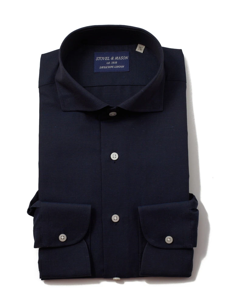 綿麻混合のカッタウェイ長袖ワイシャツ。麻素材独特の生地が天然素材の優しい印象を与えます。