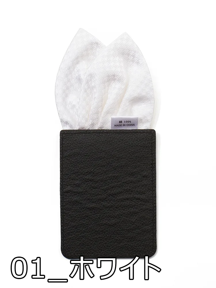 【シルク100%】ポケットチーフ 簡易式 千鳥格子 通年(ホワイト)