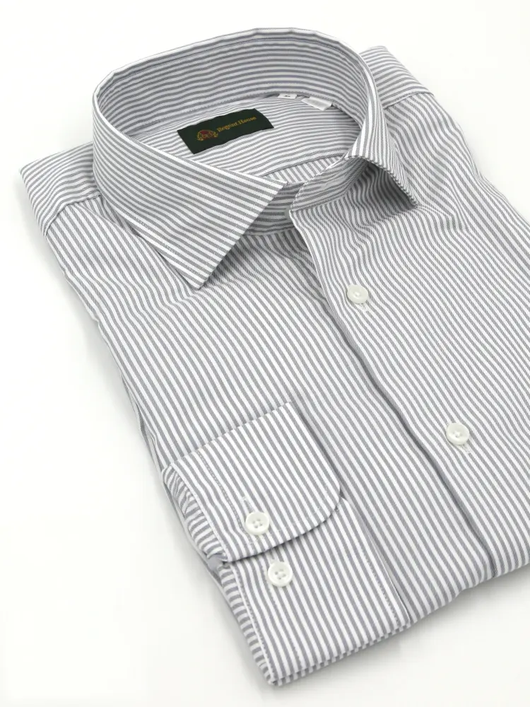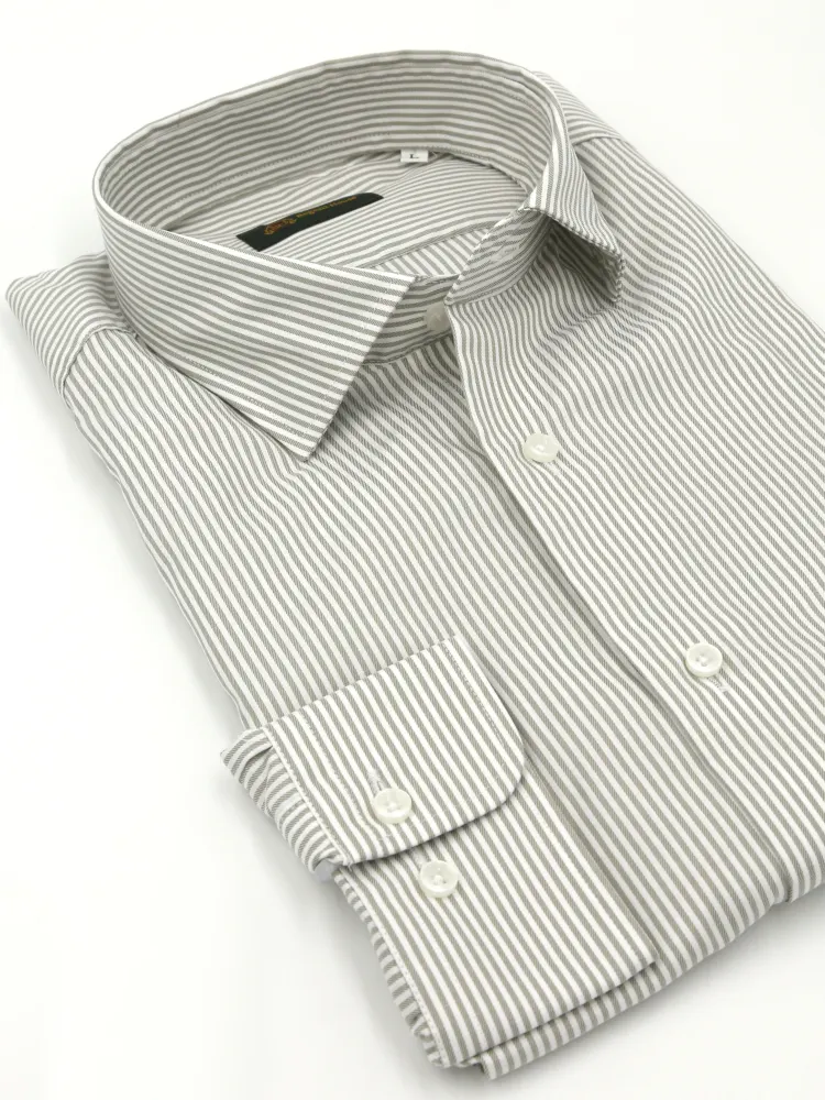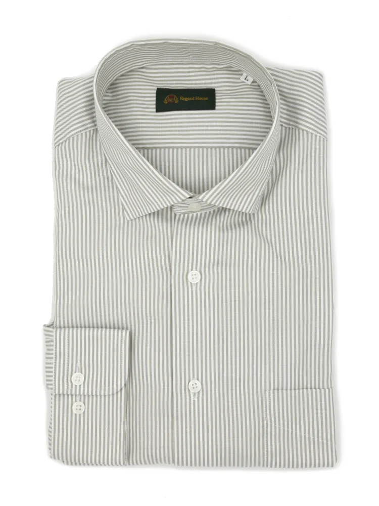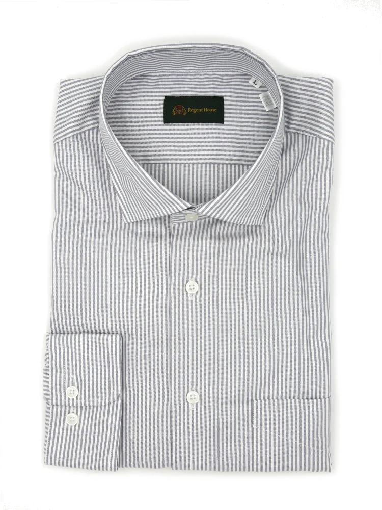 【綿100%】長袖 ワイシャツ イージーケア ドレカジ ワイドカラー ストライプ リージェントハウス(L.グレー)
