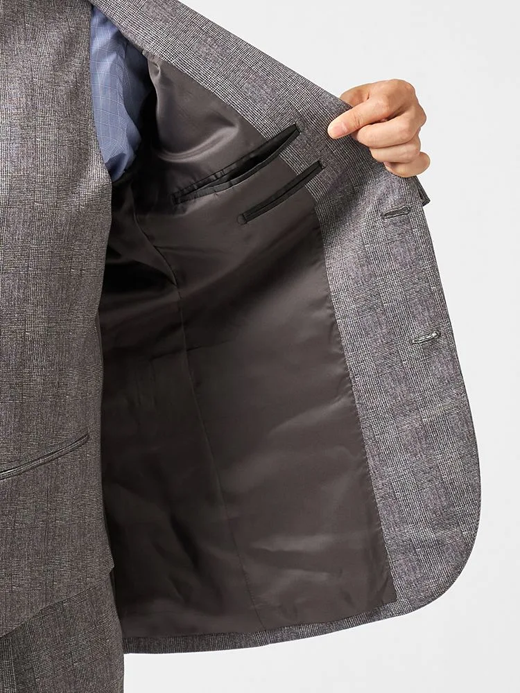 【Cassette Cross】スリーピーススーツ 2つボタン 上下ウォッシャブル ニット素材 グレンチェック nero 秋冬【スリムデザイン】