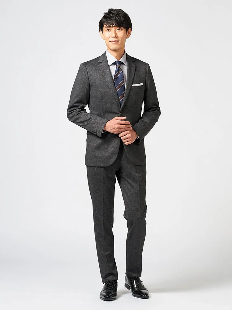 【上下ウォッシャブル】スーツ 2つボタン ニット素材 織柄無地 リッケンバッカー 秋冬