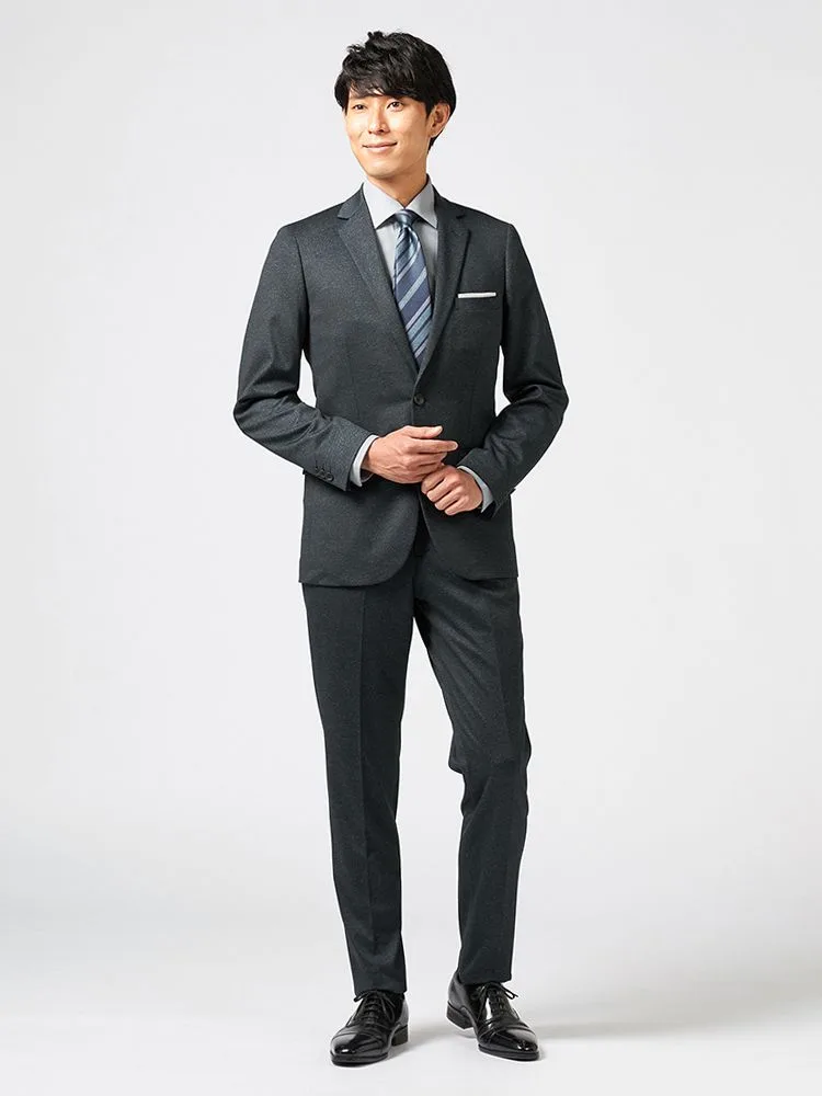 【CassetteCross】スーツ2つボタン上下ウォッシャブルニット素材無地nero秋冬【スリムデザイン】