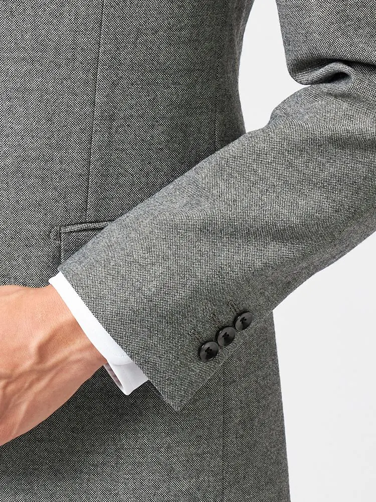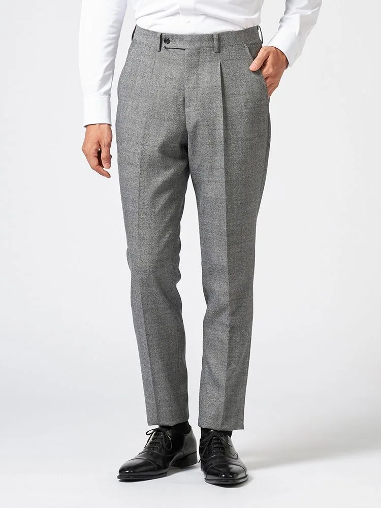 ジャケットはベーシックな通常仕立て、パンツは立体感のあるワンタック入りで、年代問わずに取り入れることができます。