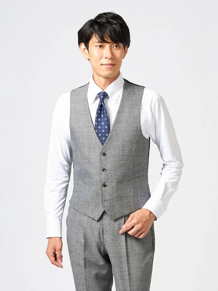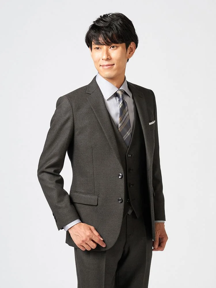 ジャケット、パンツ、ベストの3点セットで、スーツ全体を簡単にコーディネートできます。ビジネスやフォーマルな場面に最適です。