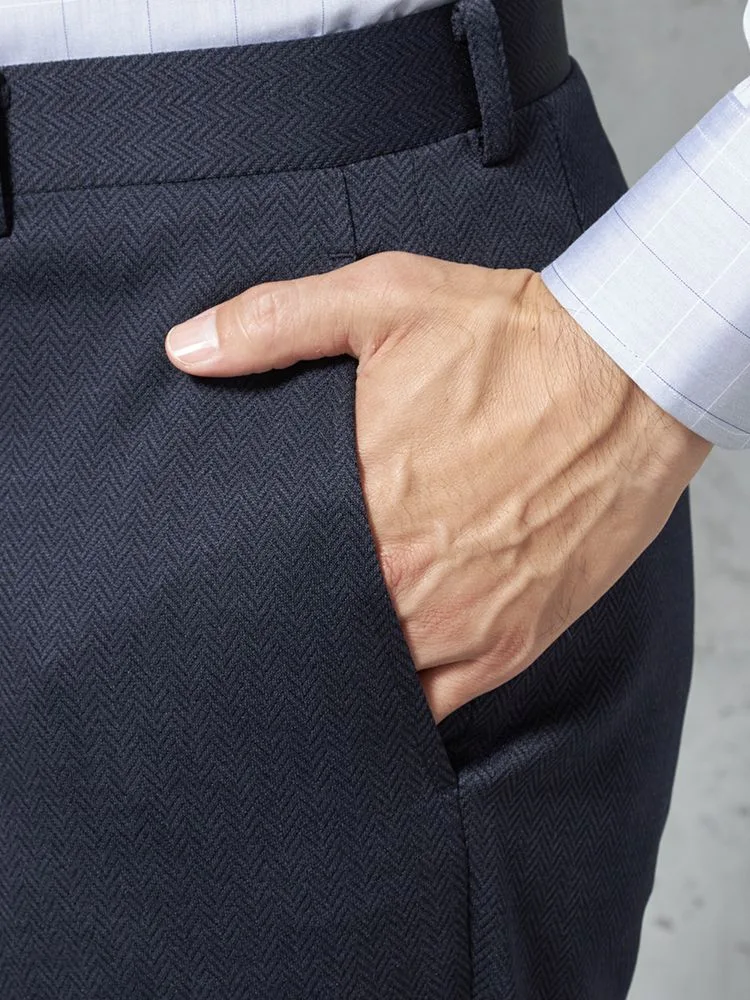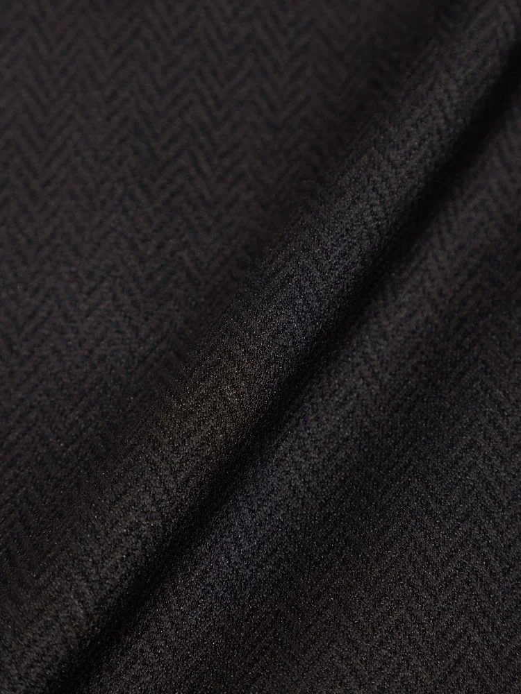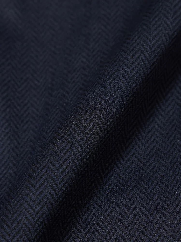 あわせるアイテムを選ばない定番のカラーに、さりげないヘリンボーン柄がおしゃれ心をくすぐるポイントです。