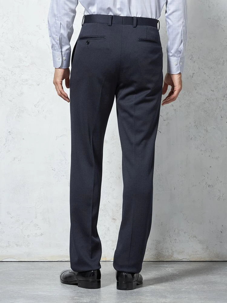 パンツの腰回りに生地の折り込みがなく、スッキリとしたシルエットを実現します。シンプルで洗練された印象を与え、すっきりとした着こなしが可能です。