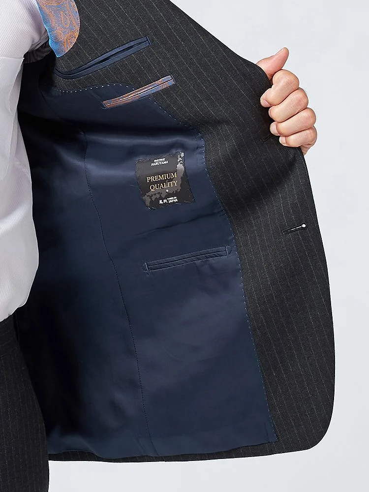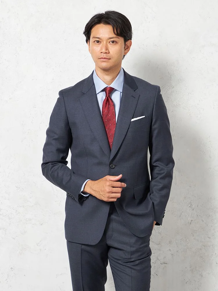 尾州産、英国羊毛&ションヘル(低速織)こだわりのプレミアム素材の高級感あふれる2つボタンスーツ。