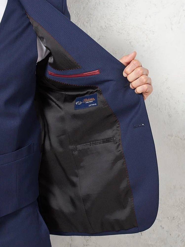 【パンツウォッシャブル】スリーピーススーツ 2つボタン ビエラスティコ ライトネイビー シャドウストライプ nero 通年【スリムデザイン】