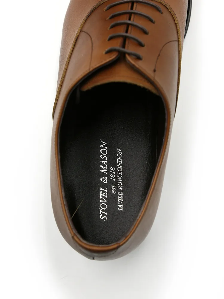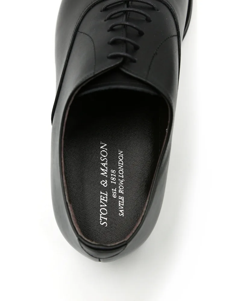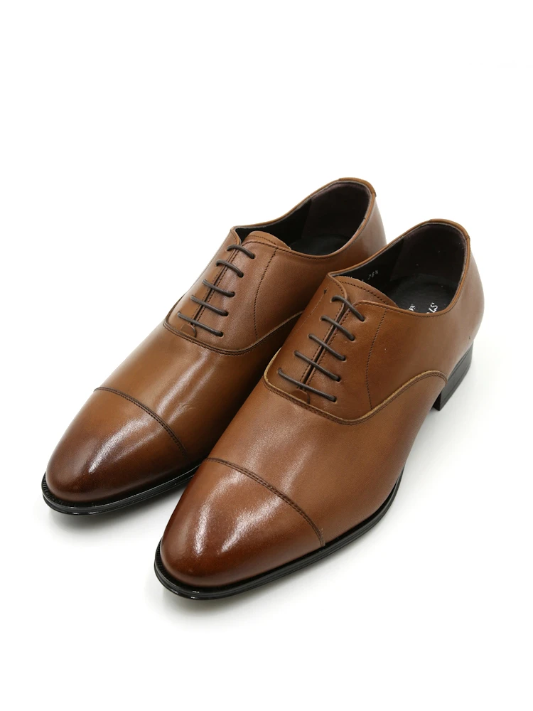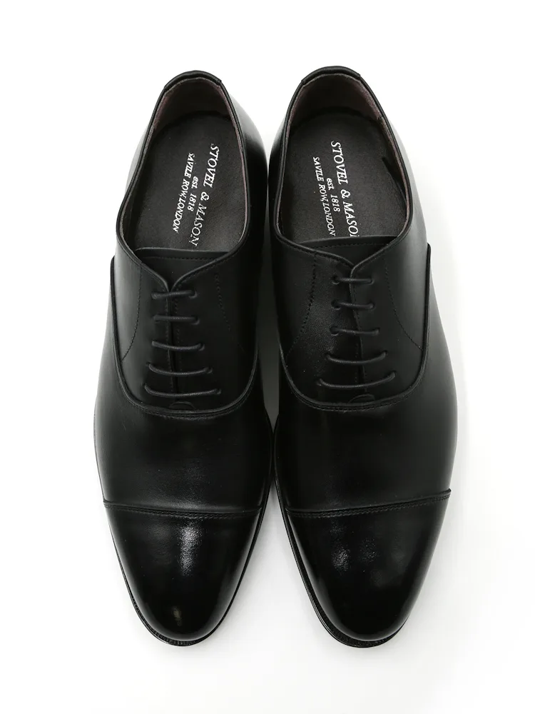 つま先に横一本線が入っている「内羽根式ストレートチップ」デザインのシューズ。