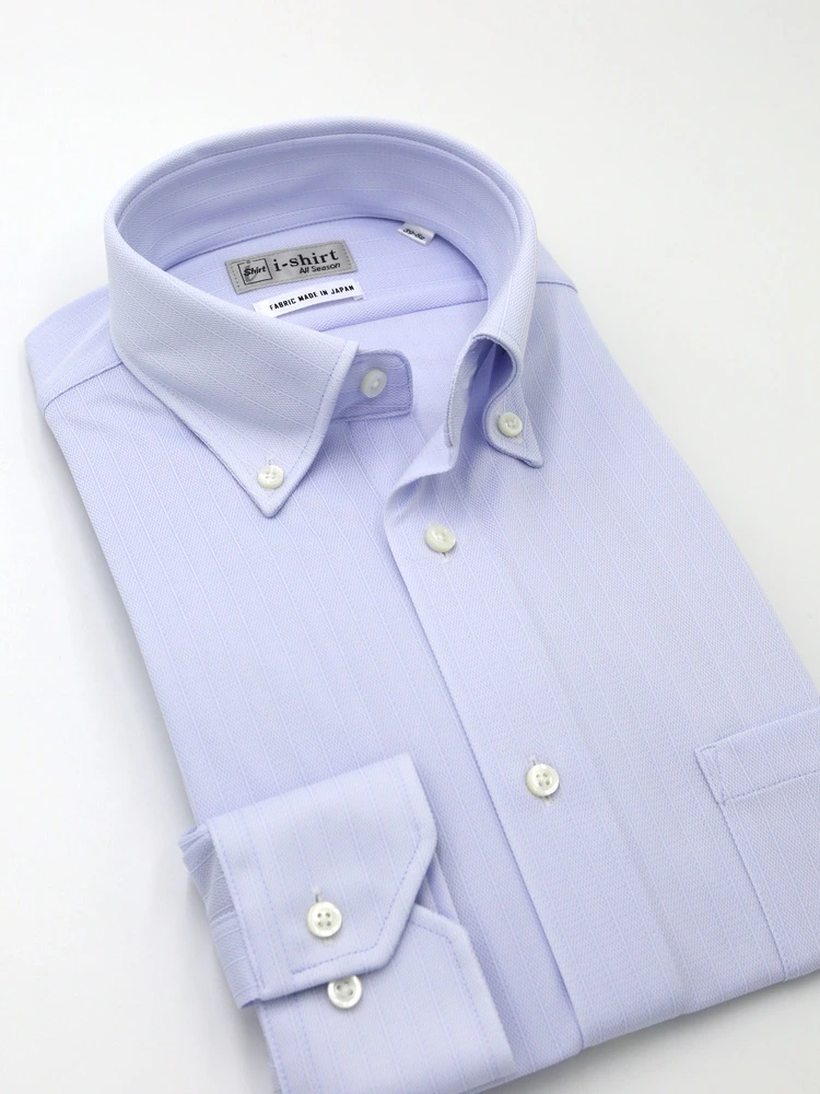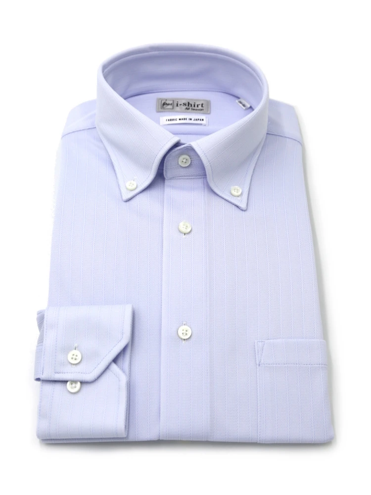 【即納】WEB限定【完全ノーアイロン】長袖 アイシャツ ボタンダウン ストレッチ ストライプ i-shirt 通年(サックス)