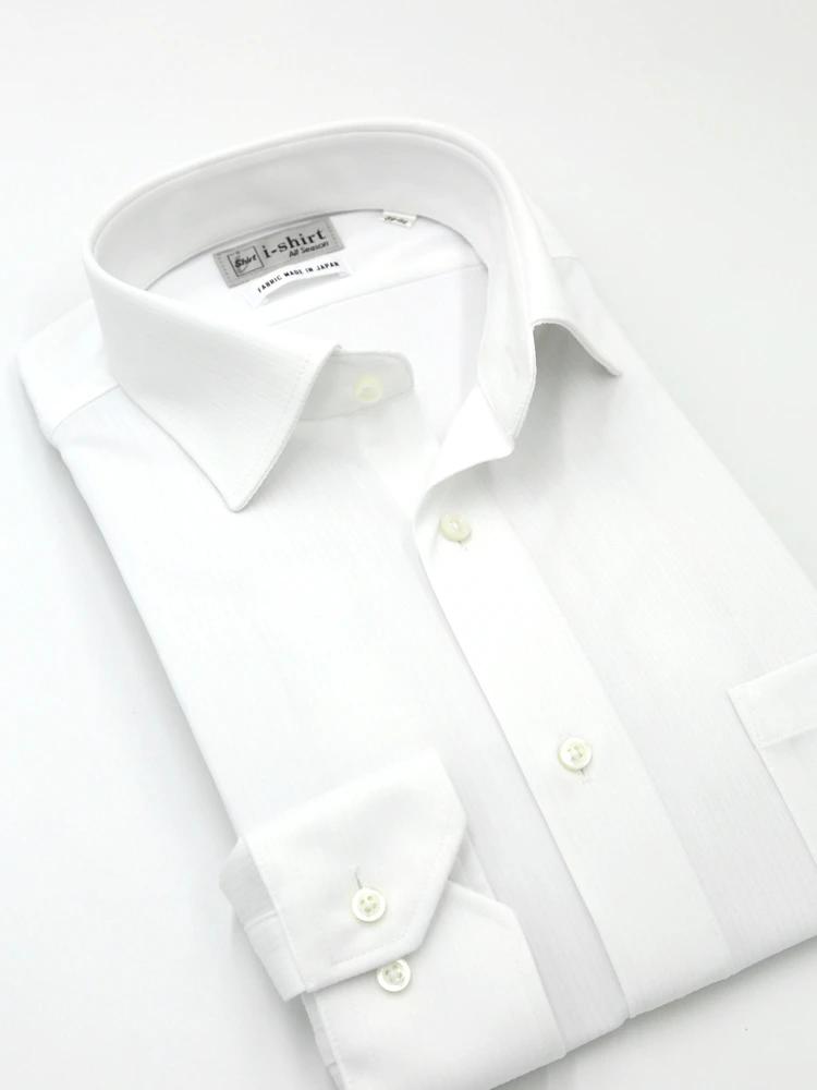 【完全ノーアイロン】長袖アイシャツレギュラーカラー白無地ワイシャツi-shirt通年【冠婚葬祭/リクルート使用可】
