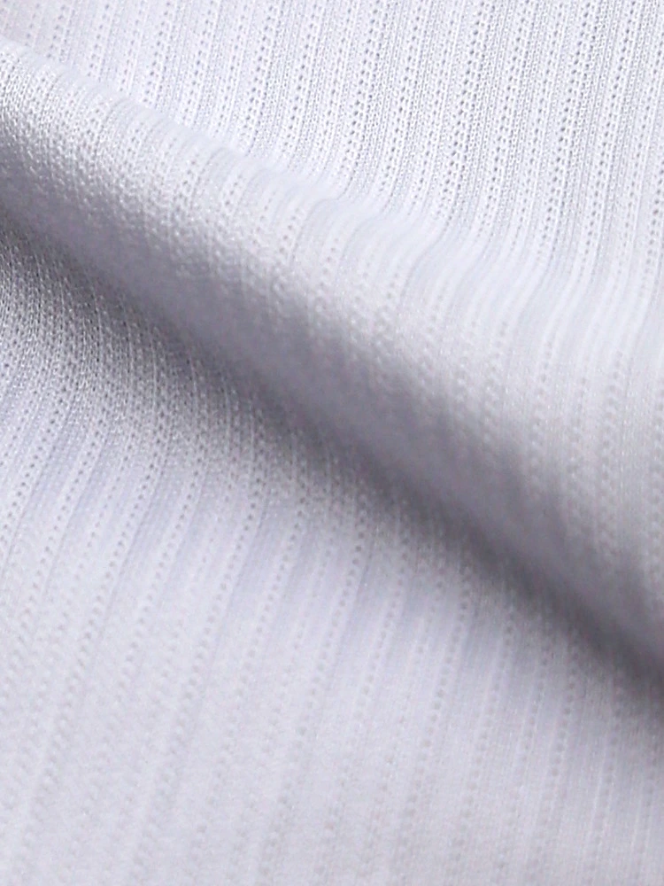 こだわりの日本製生地はソフトなポリエステルニットで、スポーツウェア等にも使われる高機能素材。体の動きに合わせて生地が伸び縮みする高いストレッチ性が特徴で、動作時の負荷が少なく着用ストレスも軽減します。
