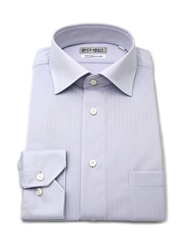 【即納】WEB限定【完全ノーアイロン】長袖 アイシャツ セミワイド ストレッチ ストライプ i-shirt 通年(L.グレー)