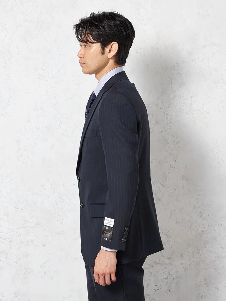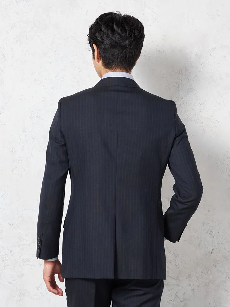 【即納】【WEB限定】スーツ2つボタンネイビーシャドウストライプ上下ウォッシャブル3シーズン対応