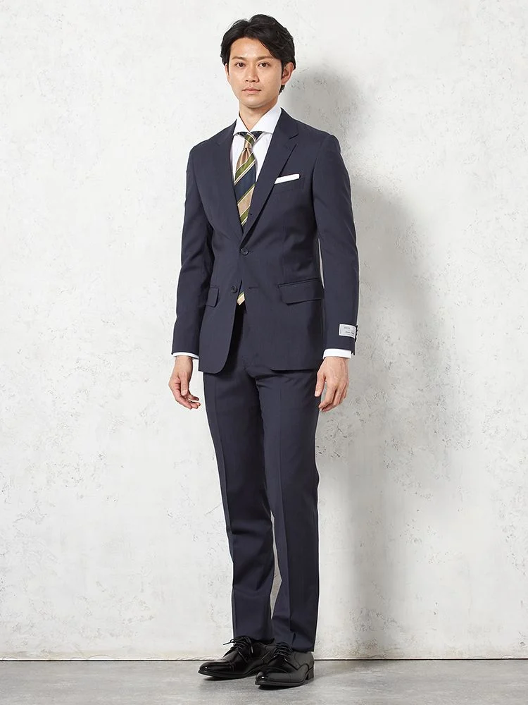 【即納】【WEB限定】スーツ2つボタンネイビーシャドウストライプ上下ウォッシャブル3シーズン対応