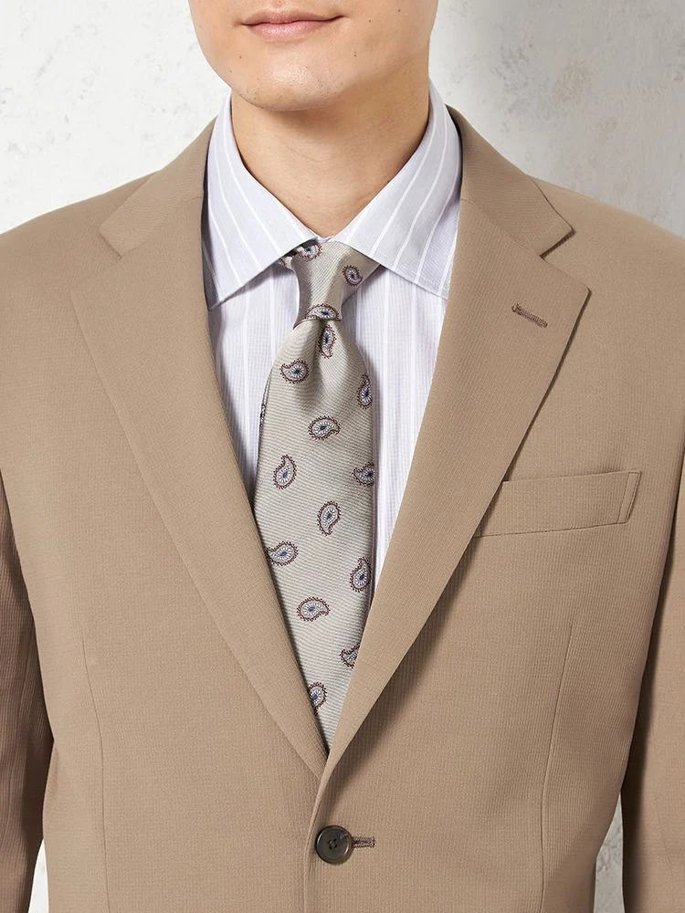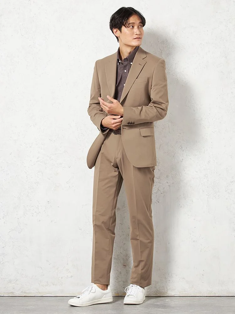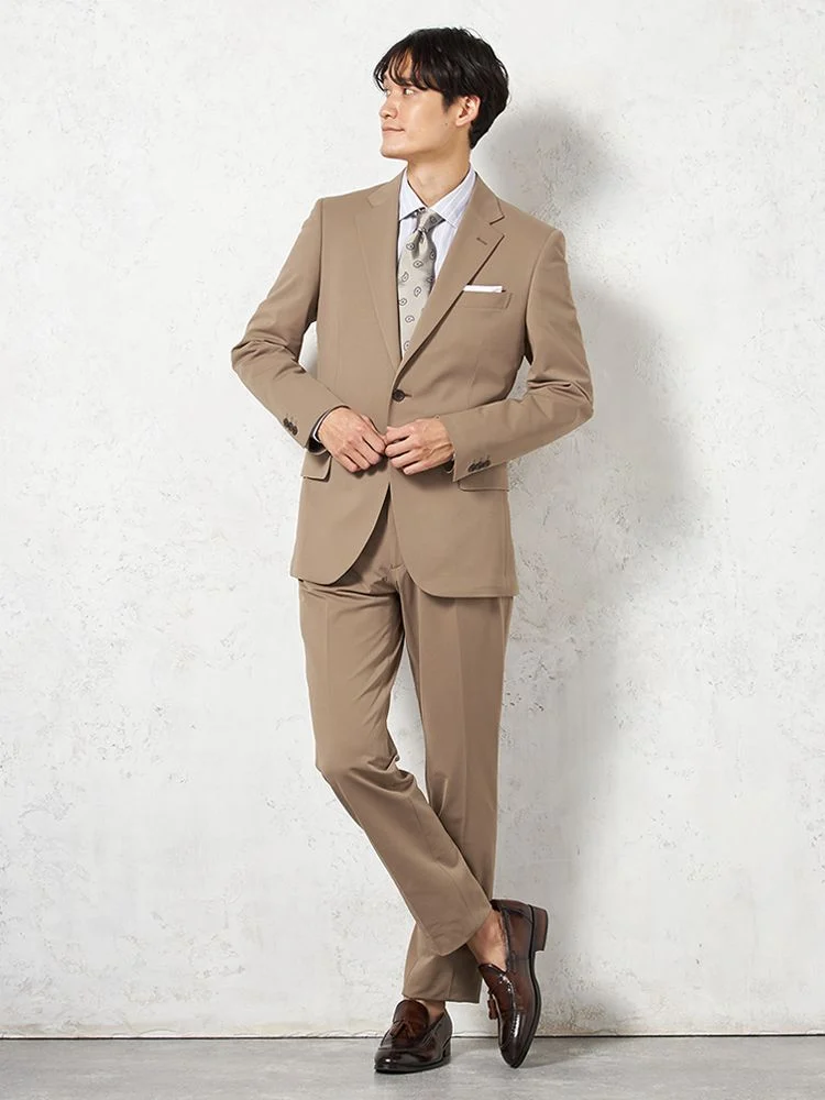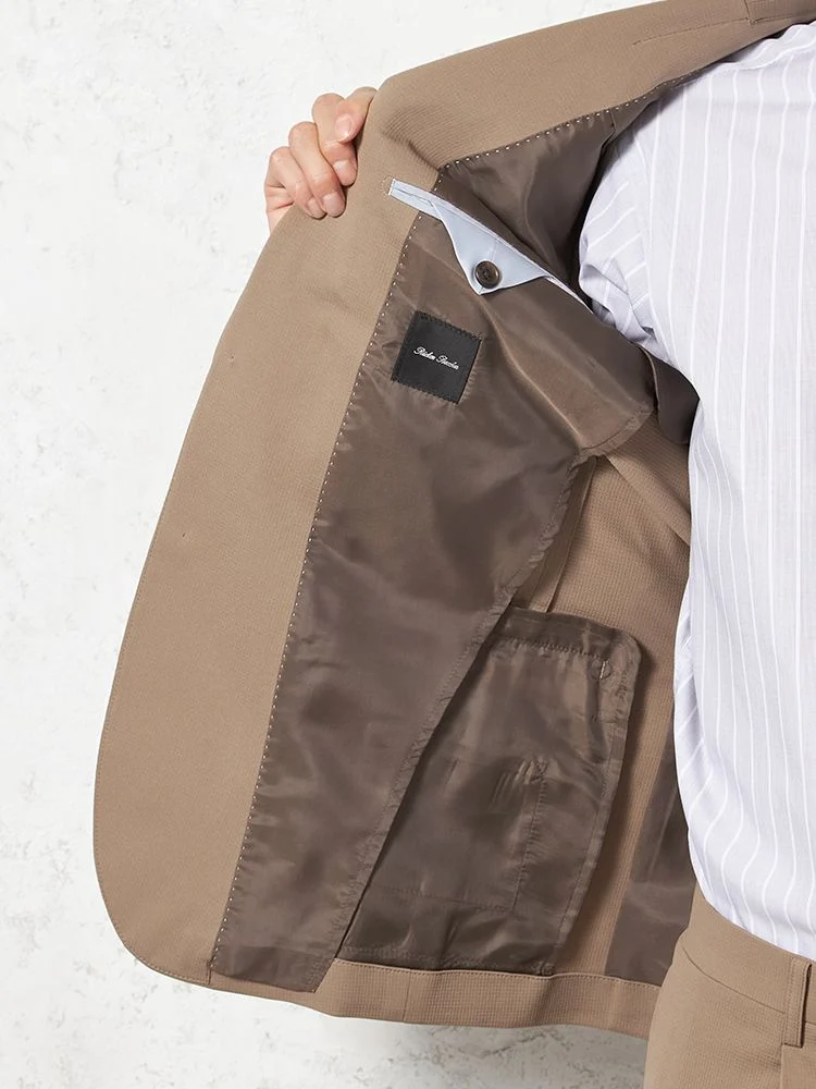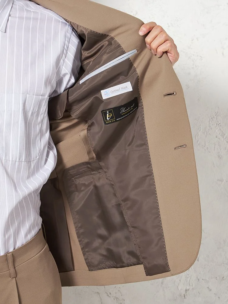 【上下ウォッシャブル】スーツ 2つボタン【i-Suit-アイスーツ-】ストレッチ 軽量 マイクロチェック リッケンバッカー 春夏(ベージュ)