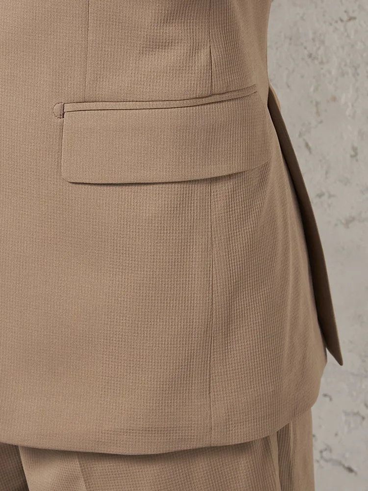 2つボタンのデザインで、クラシックなスタイルを演出。落ち着きと品のあるアイテムです。