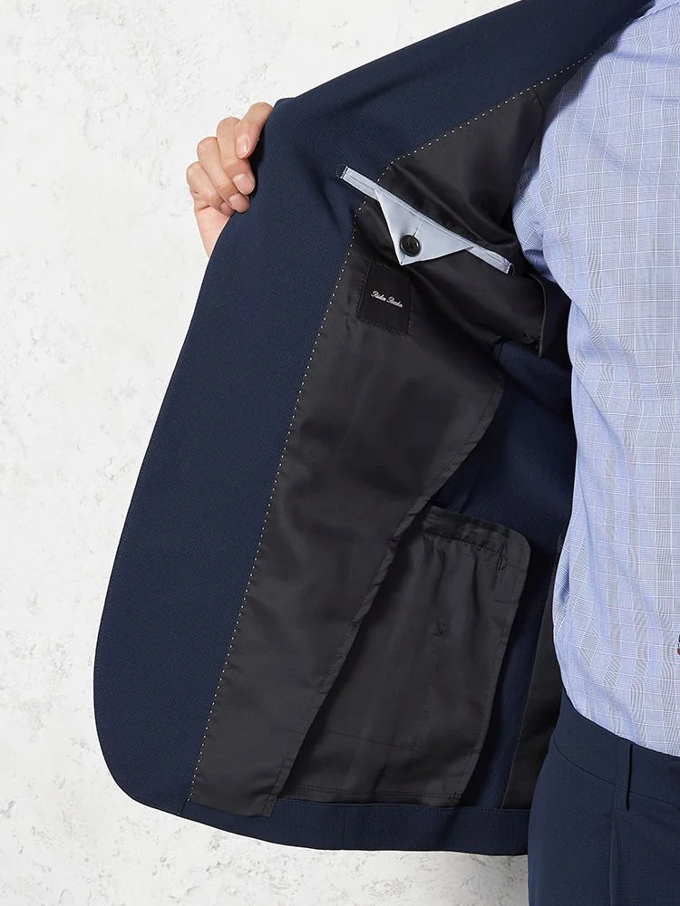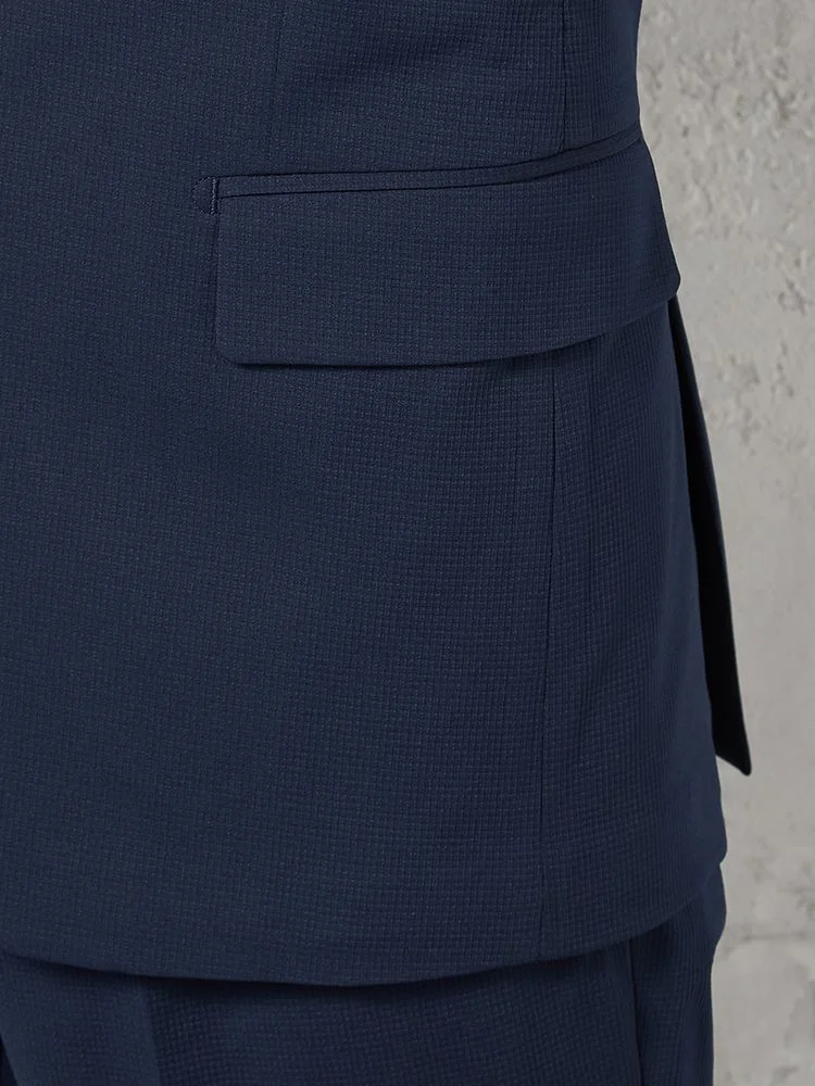【即納】【WEB限定】スーツ2つボタン4WAYストレッチ上下ウォッシャブルミニチェックネイビー