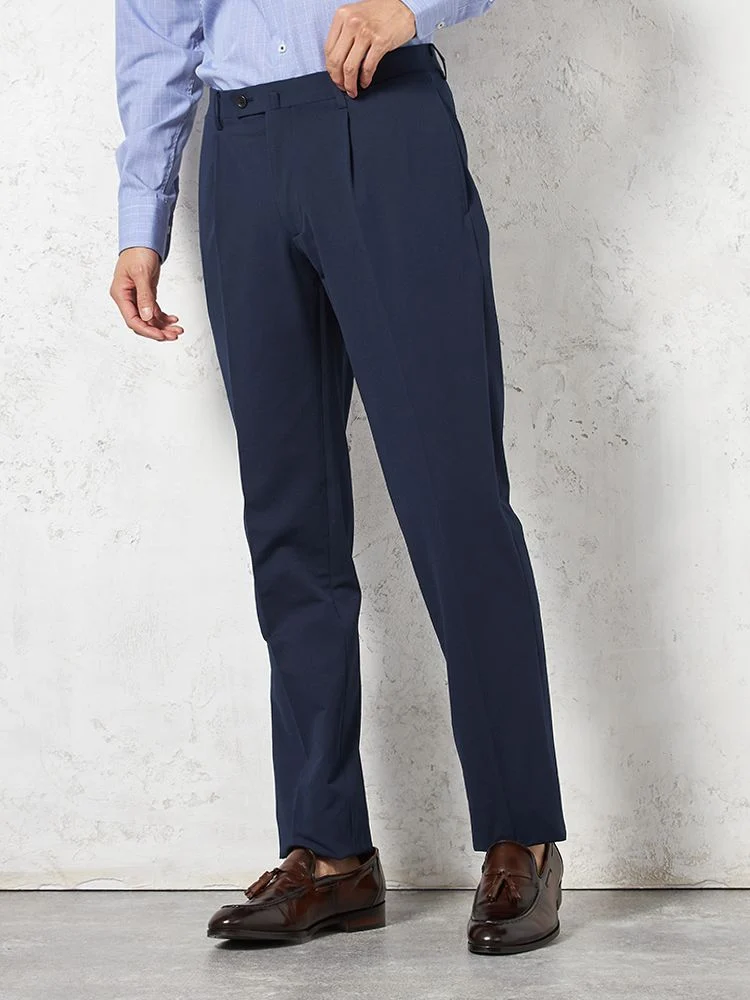 センタープリーツ加工でパンツの折り目も消えにくく、美しいラインを保ちます。