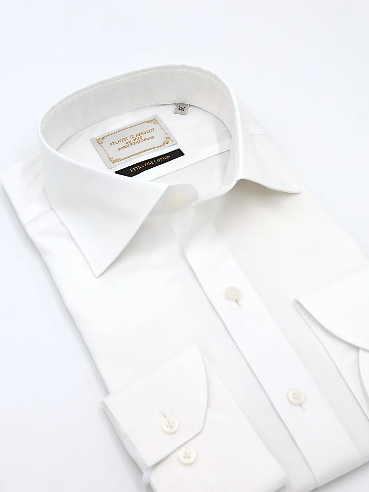 【綿100%】ハイクオリティシャツ 長袖 ワイシャツ セミワイド ホワイト 無地 STOVEL&MASON 通年