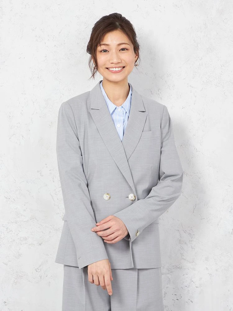 ミックスカラーのボタンがポイントになった、ダブルブレストのジャケットです。