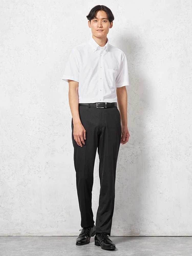 【i-Pants-アイパンツ-】バイオセンサー生地使用【スリムタイプ】接触冷感高通気ノータックシャドウストライプスラックスnero春夏【スリムデザイン】