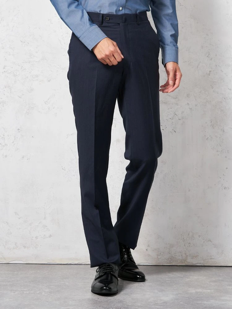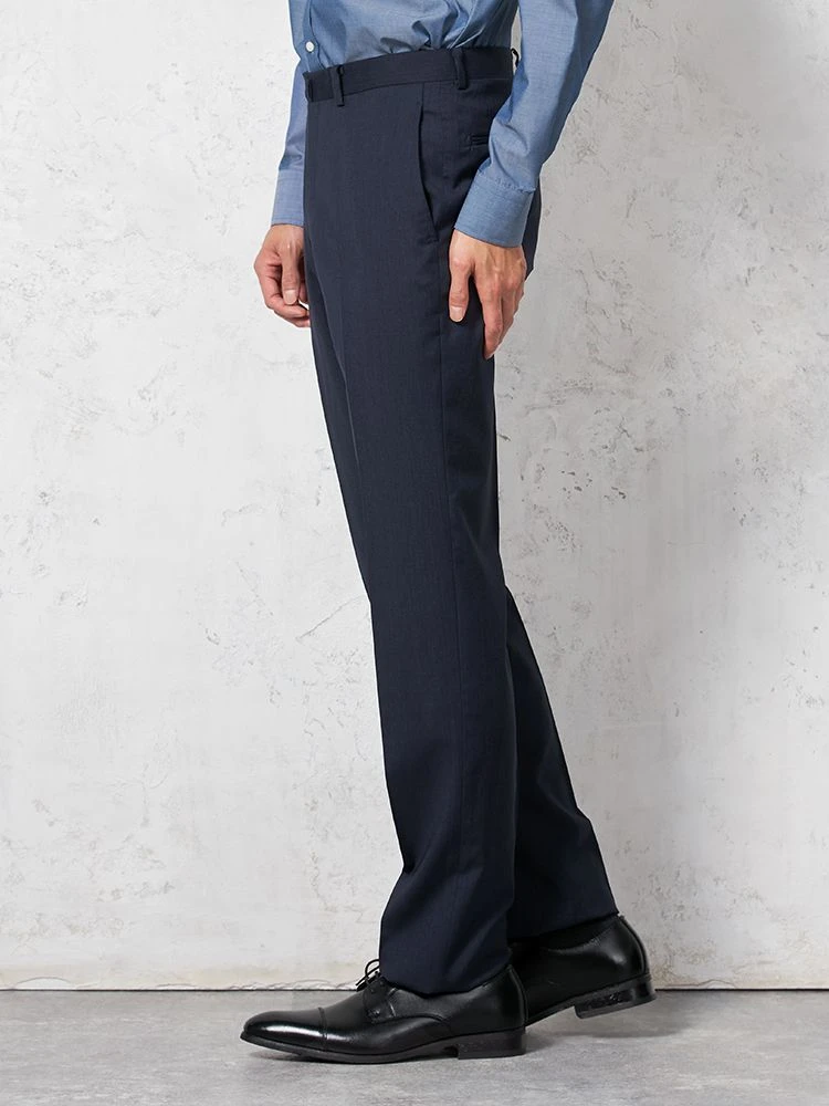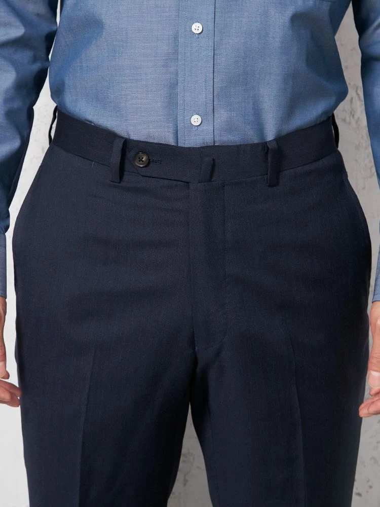 パンツの腰回りに生地の折り込みがなく、スッキリとしたシルエットを実現します。シンプルで洗練された印象を与え、すっきりとした着こなしが可能です。
