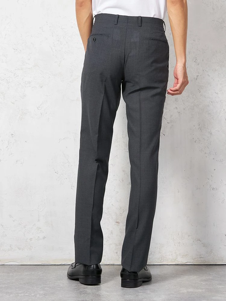【ウォッシャブル】パンツ スラックス ノータック スリム 織柄無地 nero【スリムデザイン】