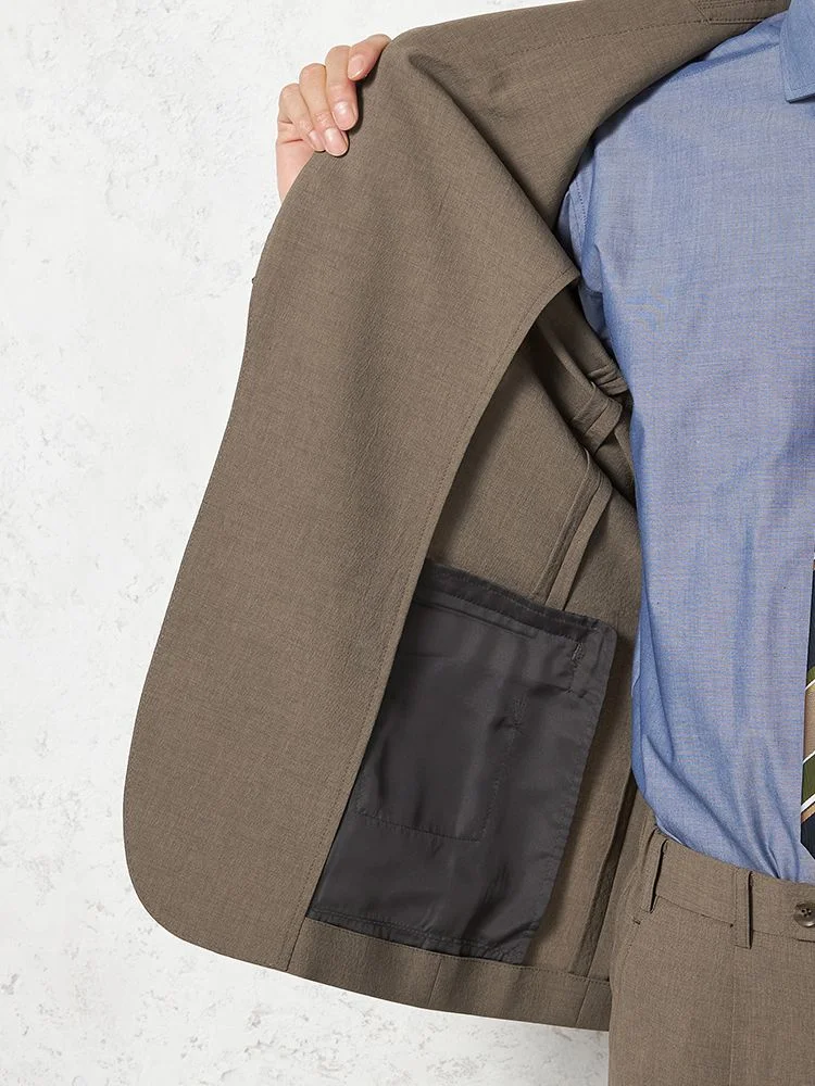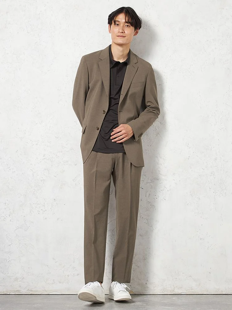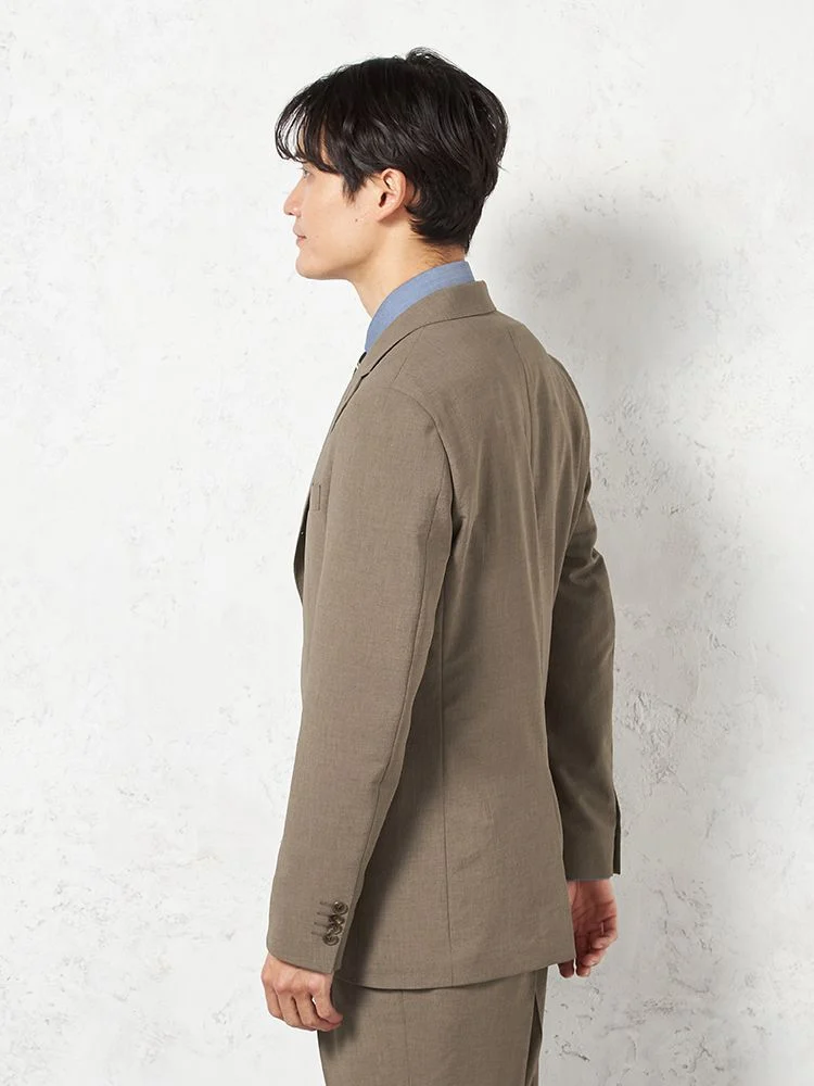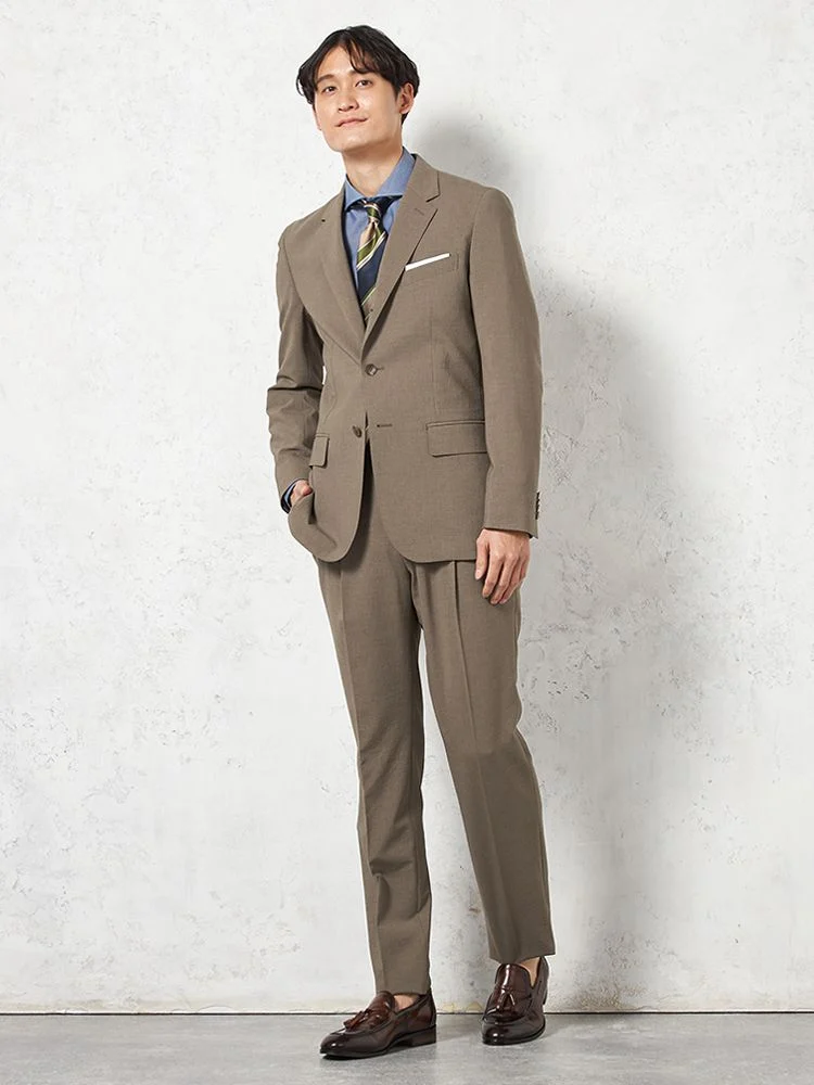 【パンツウォッシャブル】スーツ 段返り3つボタン リネンライク ライトフィール ドライタッチ 軽量 ブラウン リッケンバッカー 春夏