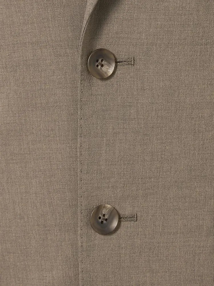 段返りの3つボタンデザインで、シンプルながらも品格を感じさせる仕上がり。きちんと感があり、フォーマルにも最適です。