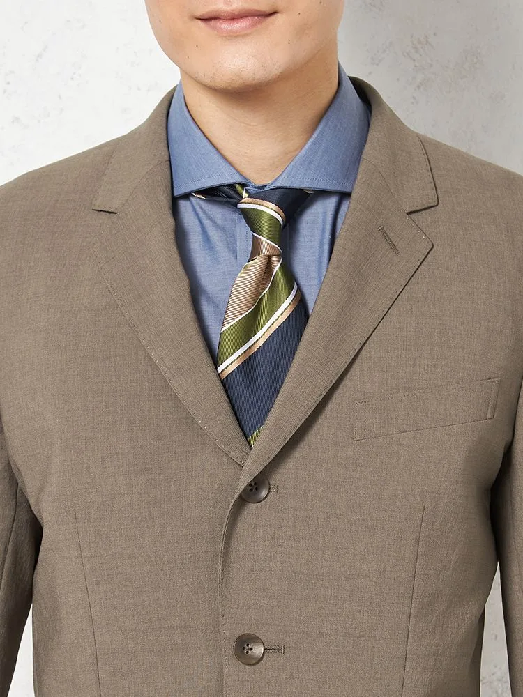 【パンツウォッシャブル】スーツ段返り3つボタン尾州素材麻混ライトフィールストレッチ織柄無地リッケンバッカー春夏