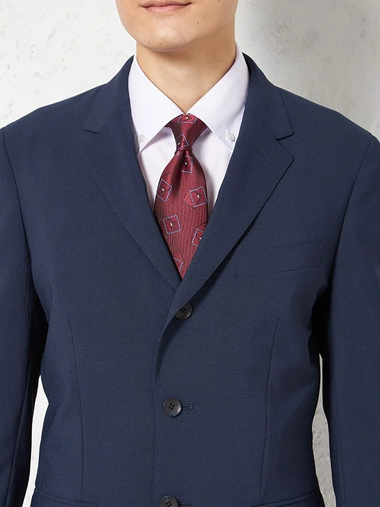 【パンツウォッシャブル】スーツ 段返り3つボタン リネンライク ライトフィール ドライタッチ 軽量 ネービー リッケンバッカー 春夏