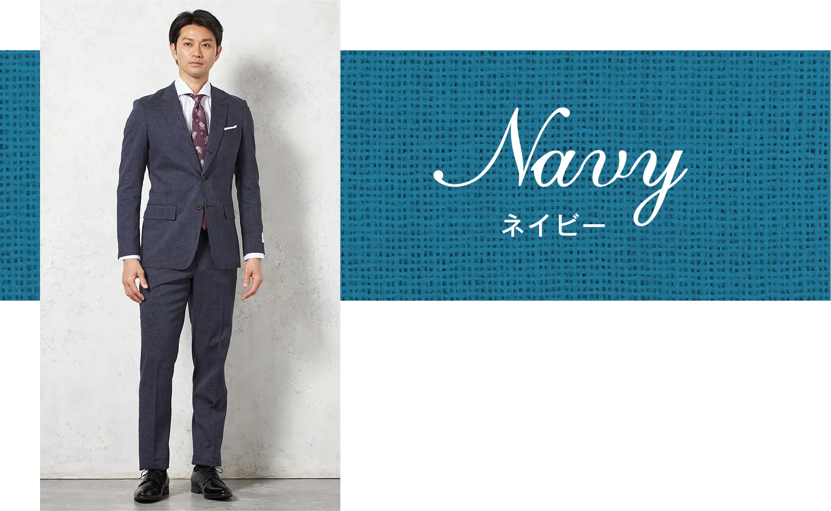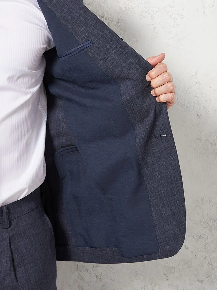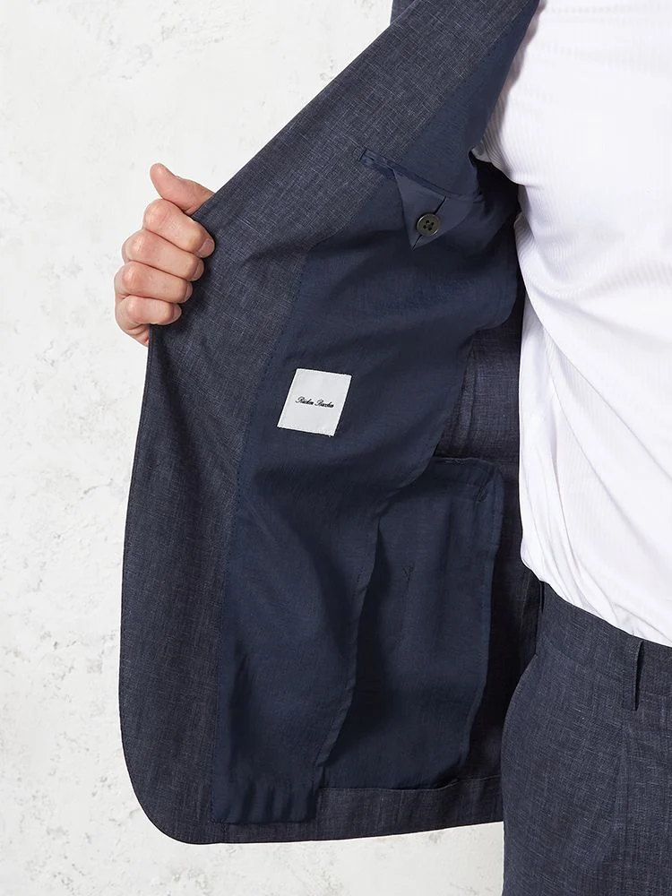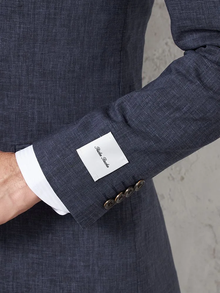 尾州産リネン混ストレッチ素材を使用した、ライトフィール仕立てのスーツです。