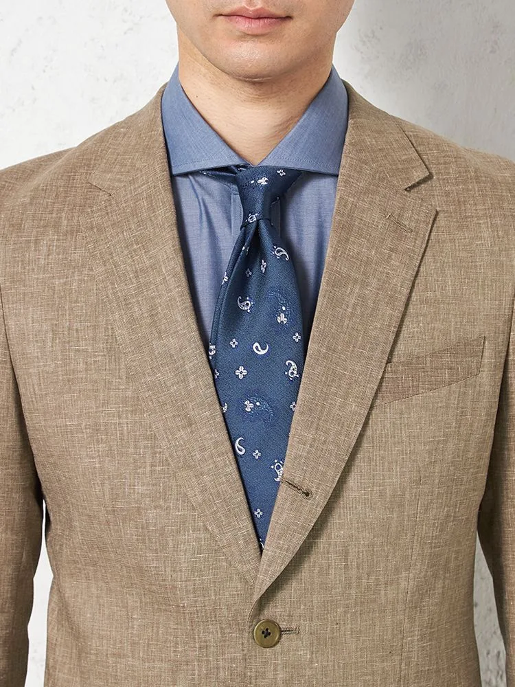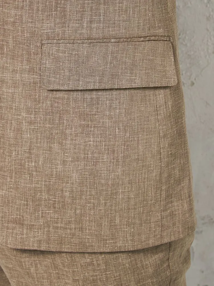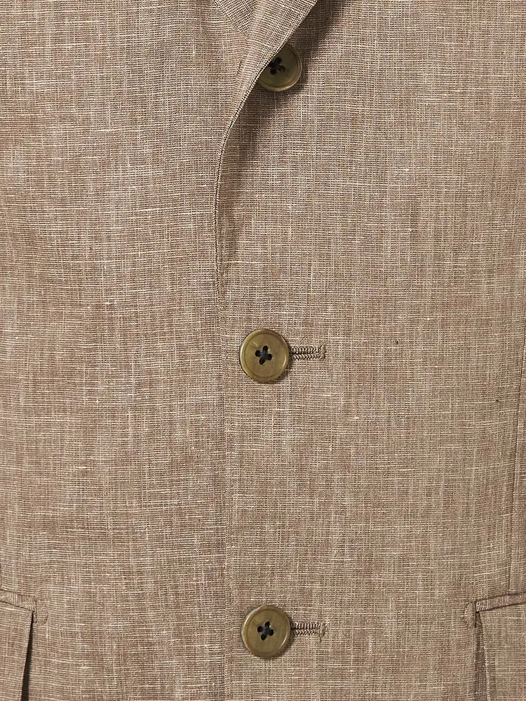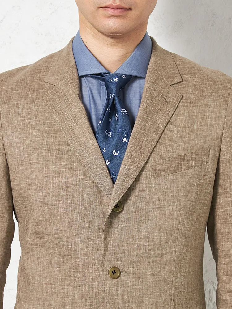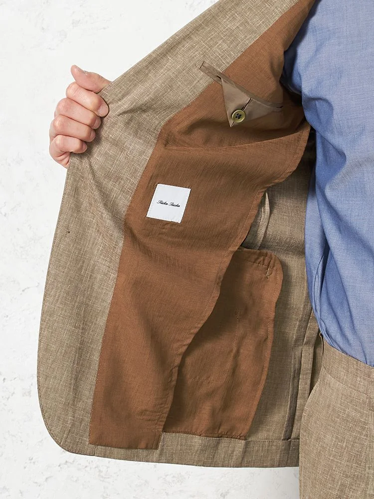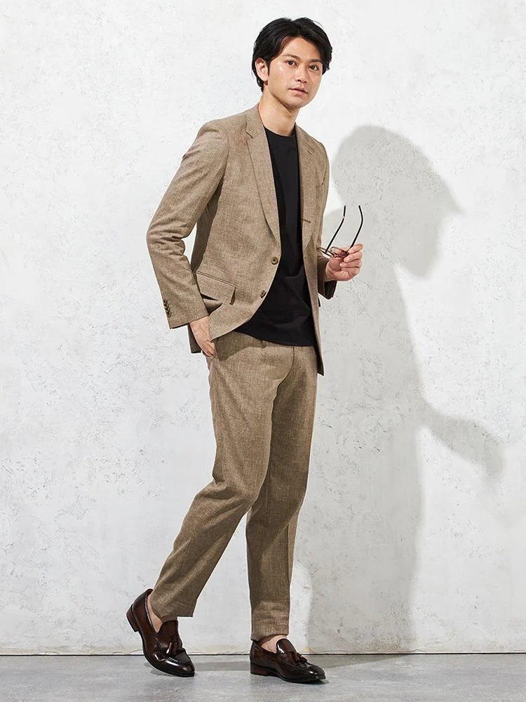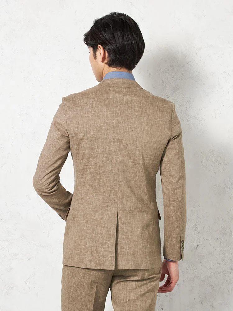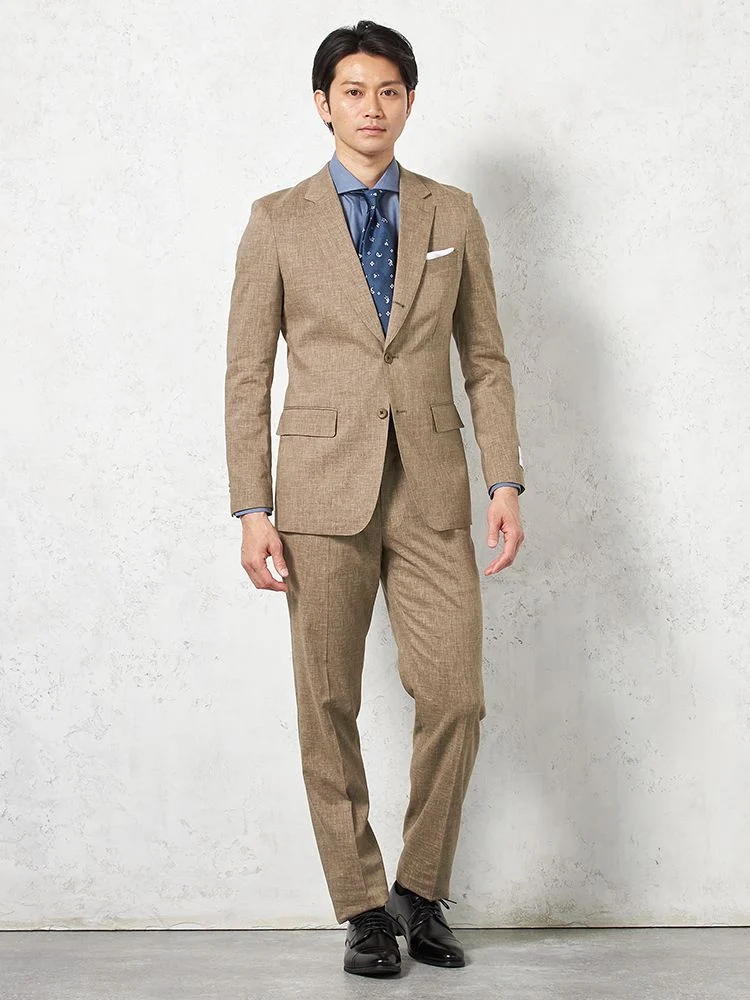 【パンツウォッシャブル】スーツ 段返り3つボタン 尾州素材 麻混 ライトフィール ストレッチ 織柄無地 リッケンバッカー 春夏(ブラウン)