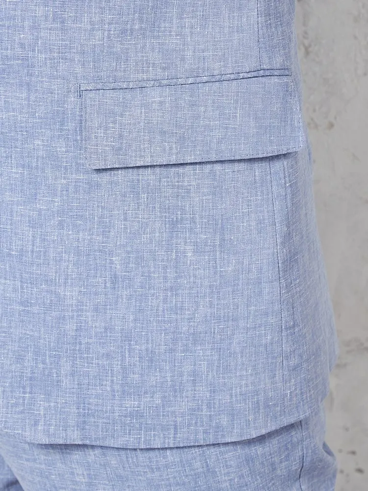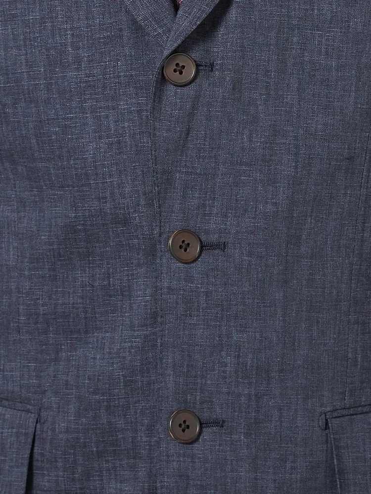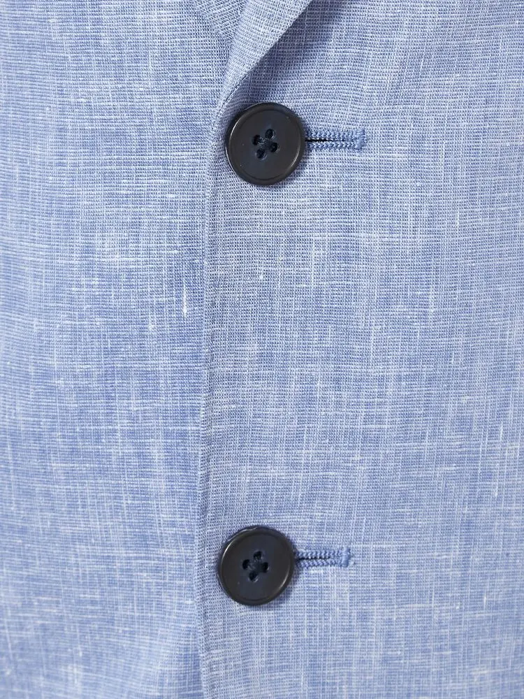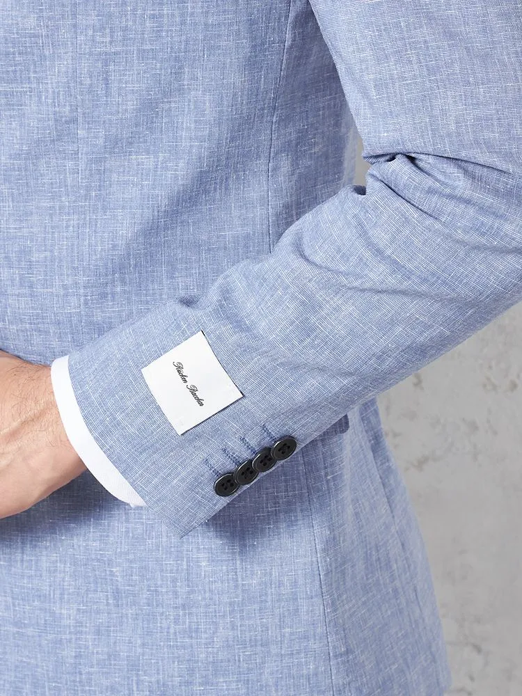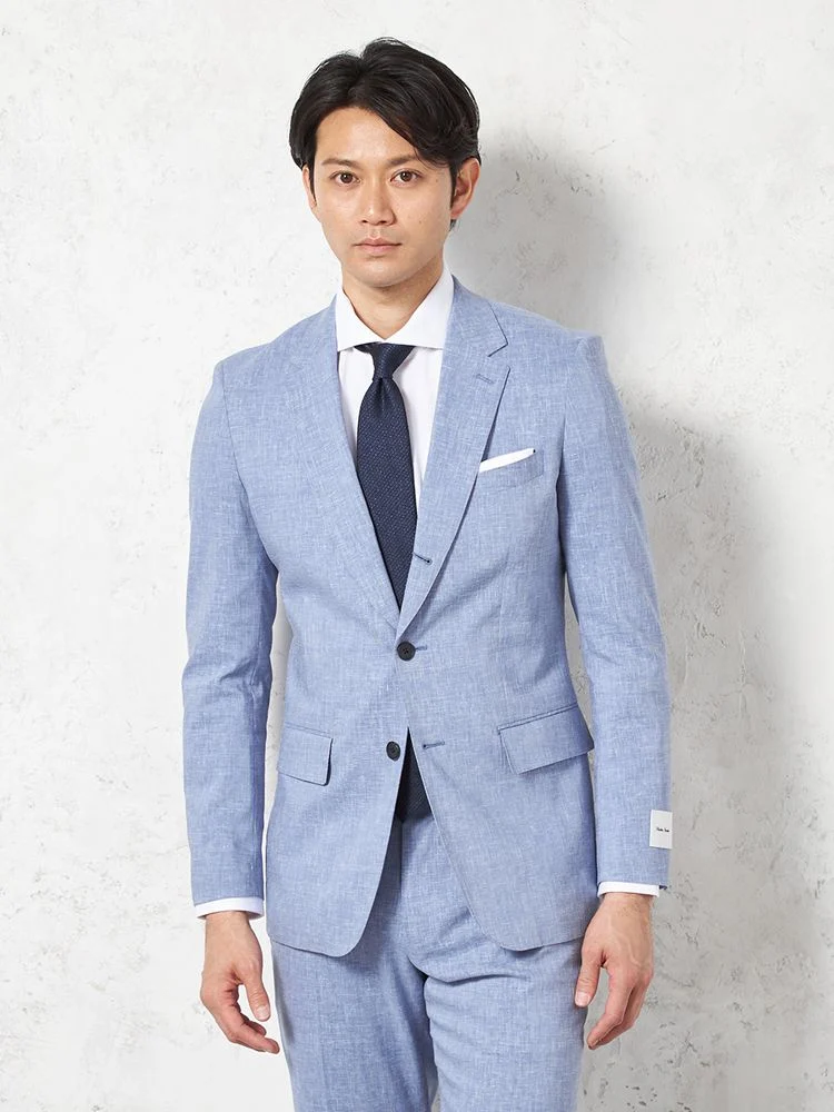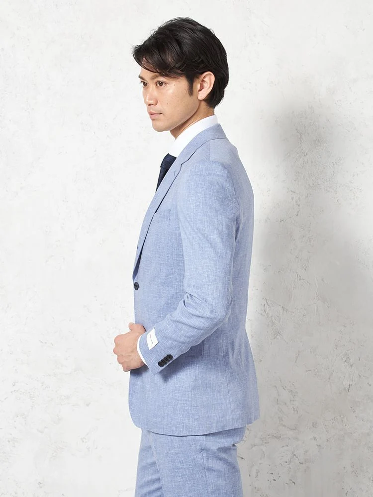【パンツウォッシャブル】スーツ段返り3つボタンリネンライクライトフィールドライタッチ軽量ブルーリッケンバッカー春夏