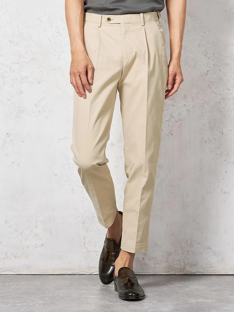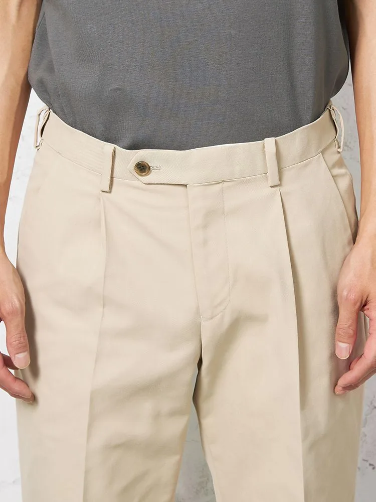 ウエストにタックを施した、程よくゆとりのあるテーパードパンツです。