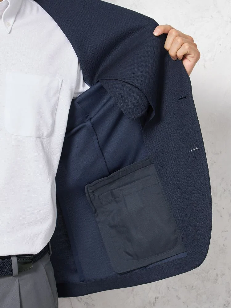 【i-Jacket-アイジャケット-】トリコットメッシュプリントジャケット2つボタンストレッチ高通気軽量ネイビー無地春夏