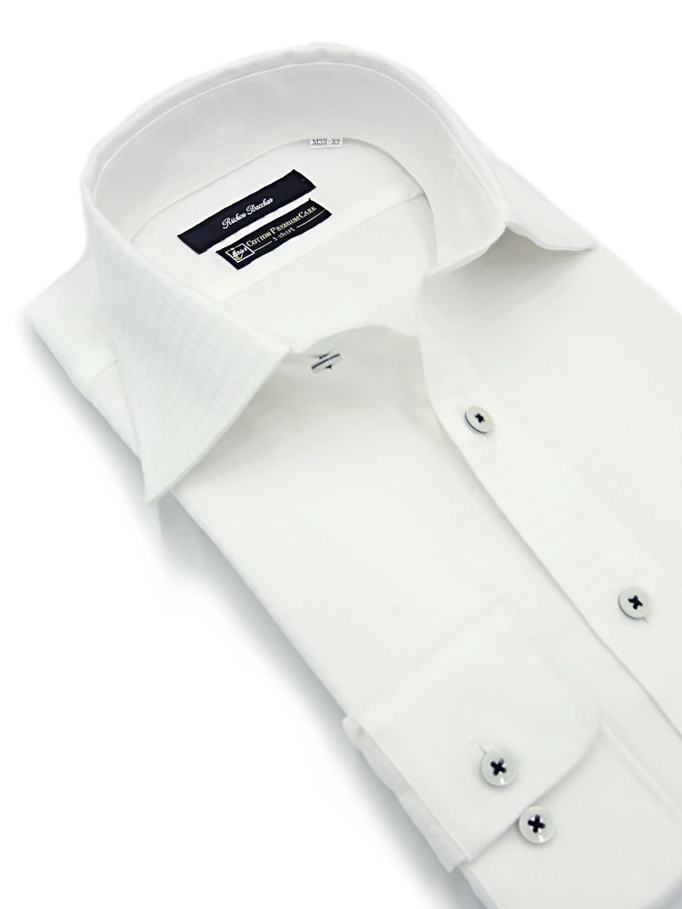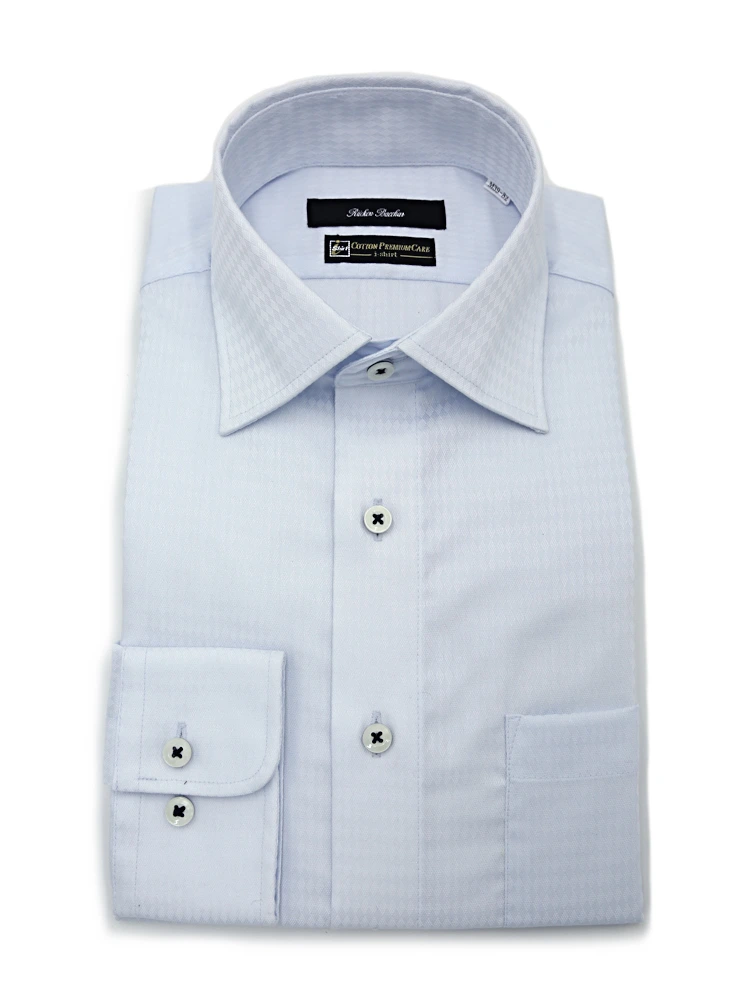 【形態安定】長袖 ワイシャツ セミワイド【コットンプレミアムケア】織柄無地 リッケンバッカー 通年(ホワイト)