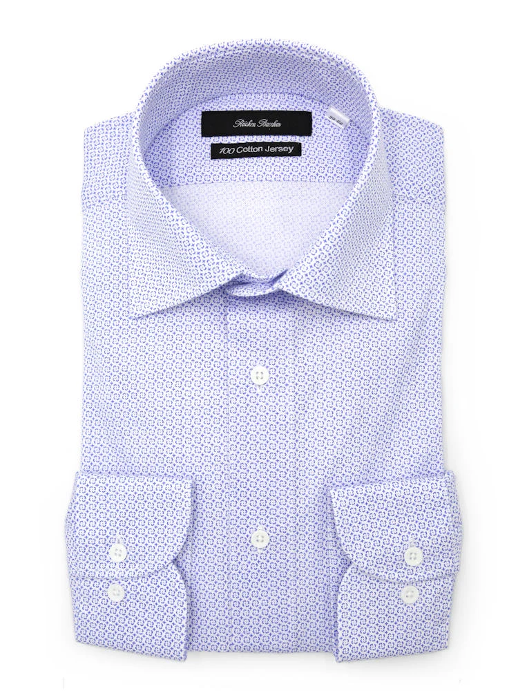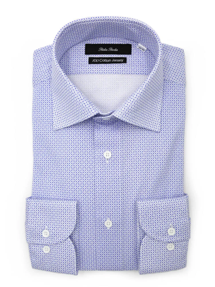 【100CottonJersey】長袖ワイシャツセミワイドプリント柄総柄ブルー綿100%リッケンバッカー通年